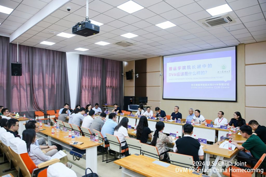 On the morning of August 10, the annual meeting of 2024 China-US joint training DVM program in China, which was jointly hosted by our university and the U.S.-China Center for Animal Health at Kansas State University, China Veterinary Drug Association, and SOTEN China, was successfully held in Hangzhou.