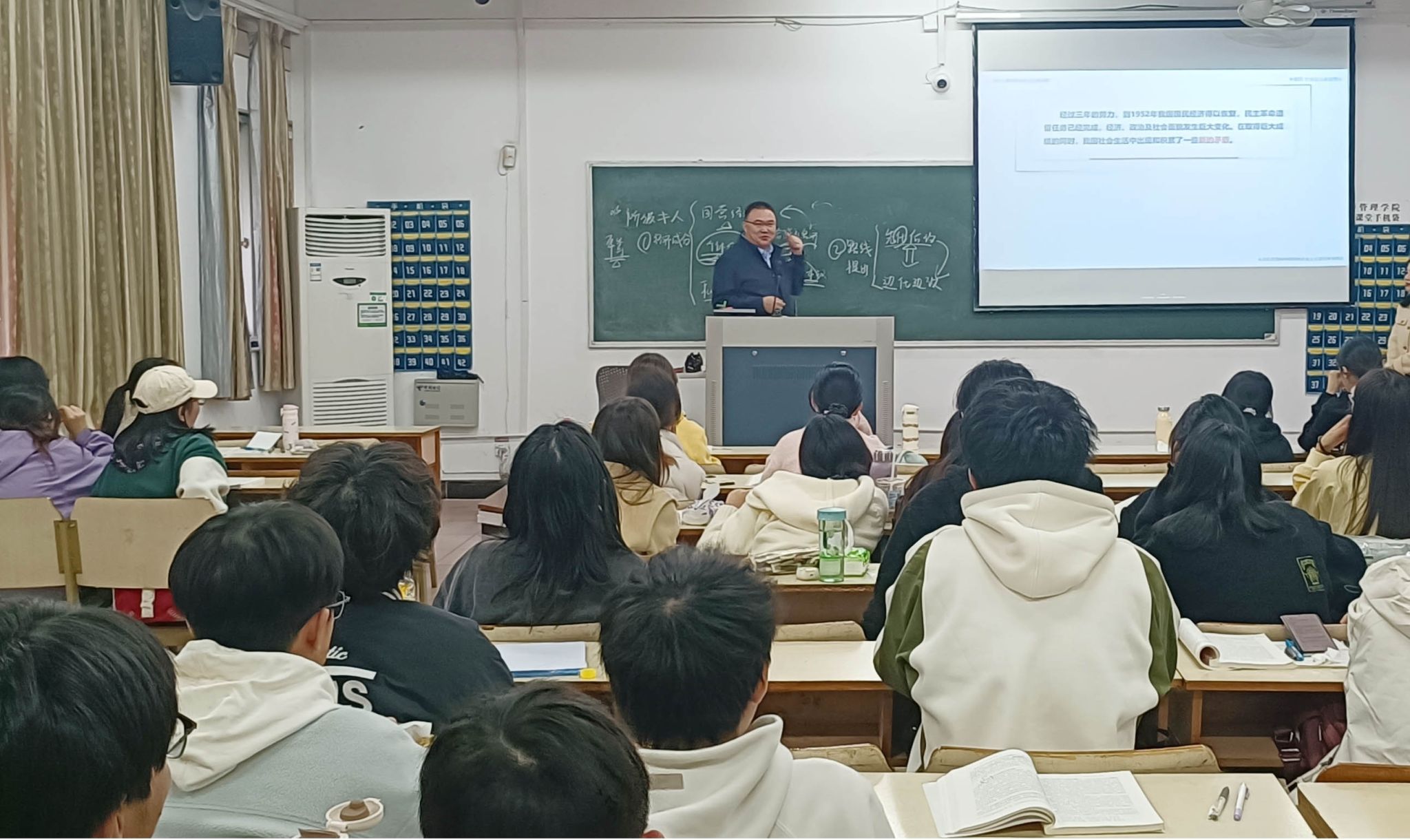 校党委书记朱斌深入文法学院思政课教学一线,宣讲党的二十届四中全会精神,勉励广大青年学子要珍惜新时代提供的广阔舞台和宝贵机遇。他希望广大同学,要通过系统学习党的创新理论、党史国史,深刻认识红色政权来之不易、新中国来之不易、中国特色社会主义来之不易,自觉从党的辉煌成就、艰辛历程、历史经验、优良传统中汲取智慧和力量,不断强化历史认同,筑牢信仰之基,补足精神之钙。要大力弘扬以伟大建党精神为源头的中国共产党人精神谱系,传承红色基因,永葆奋斗激情,将个人理想追求主动融入党和国家事业发展,努力成长为有理想、敢担当、能吃苦、肯奋斗的新时代好青年,在实现民族复兴的赛道上奋勇争先。