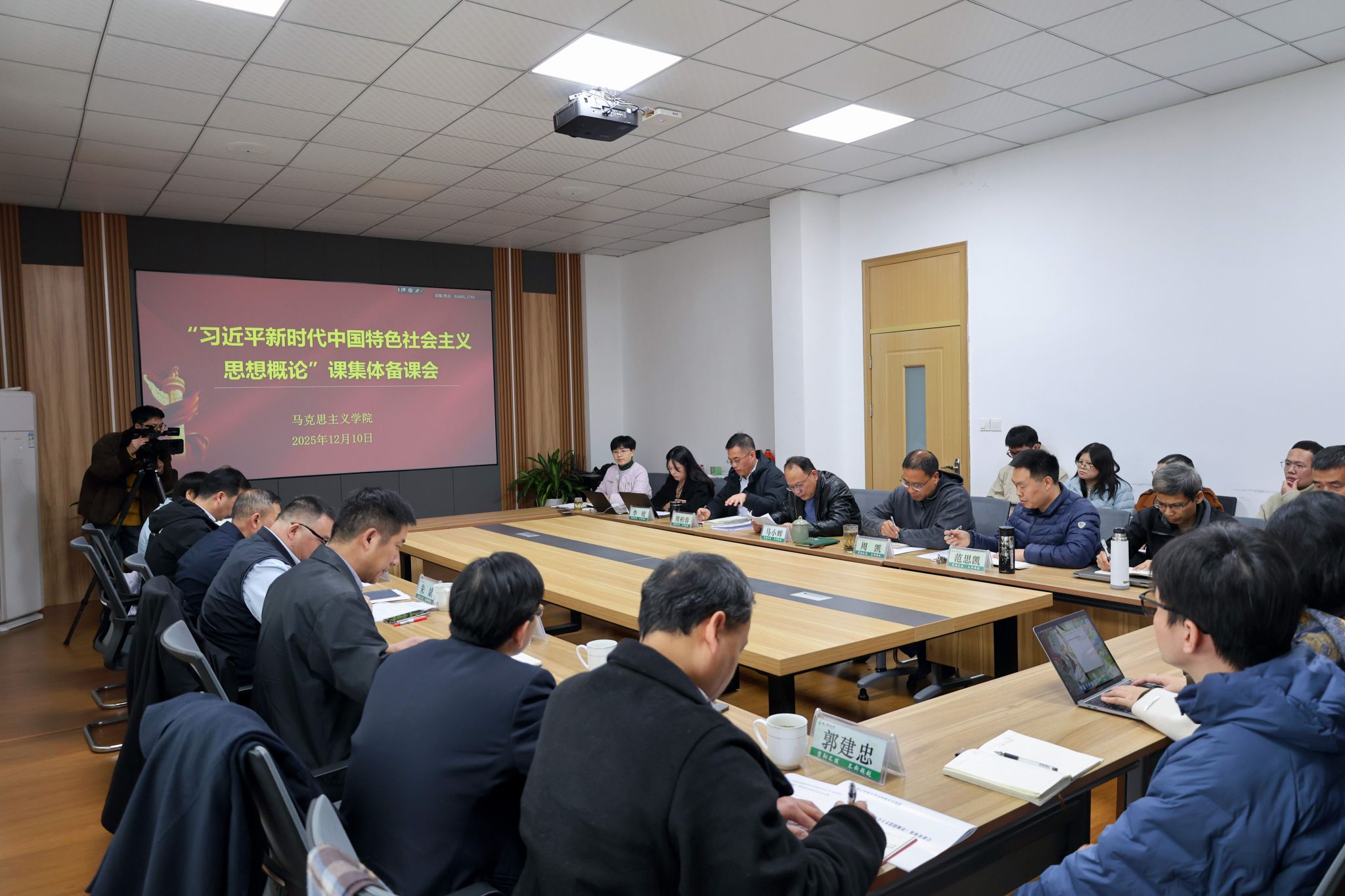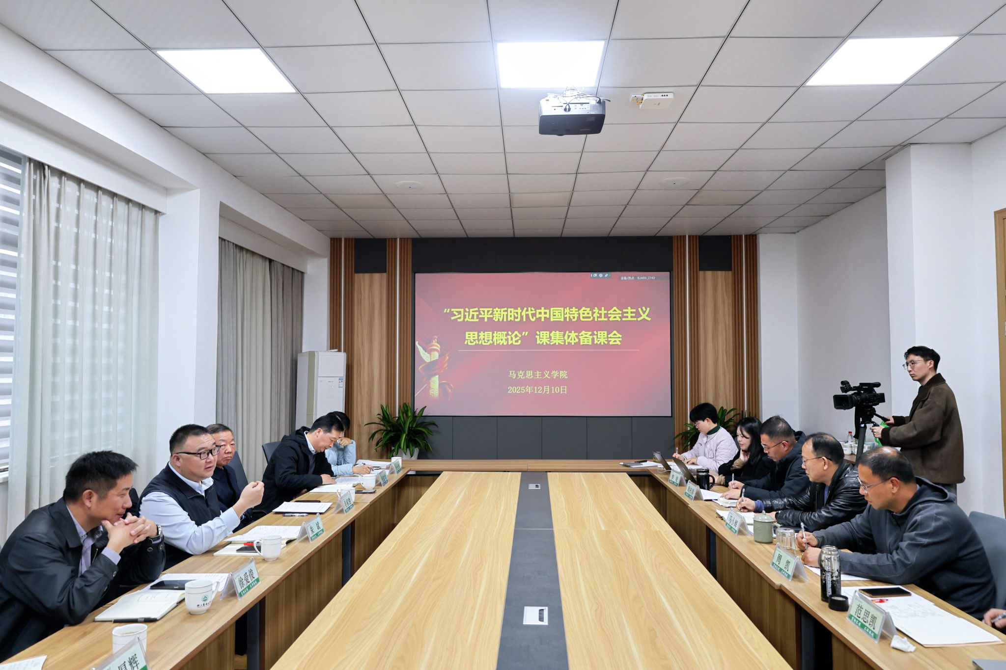 12月10日,学校在马克思主义学院召开“习近平新时代中国特色社会主义思想概论”课程集体备课会。校领导朱斌、吴家胜、徐爱俊、倪建均、宋厚辉参加备课会,并与思政课教师进行了深入交流。