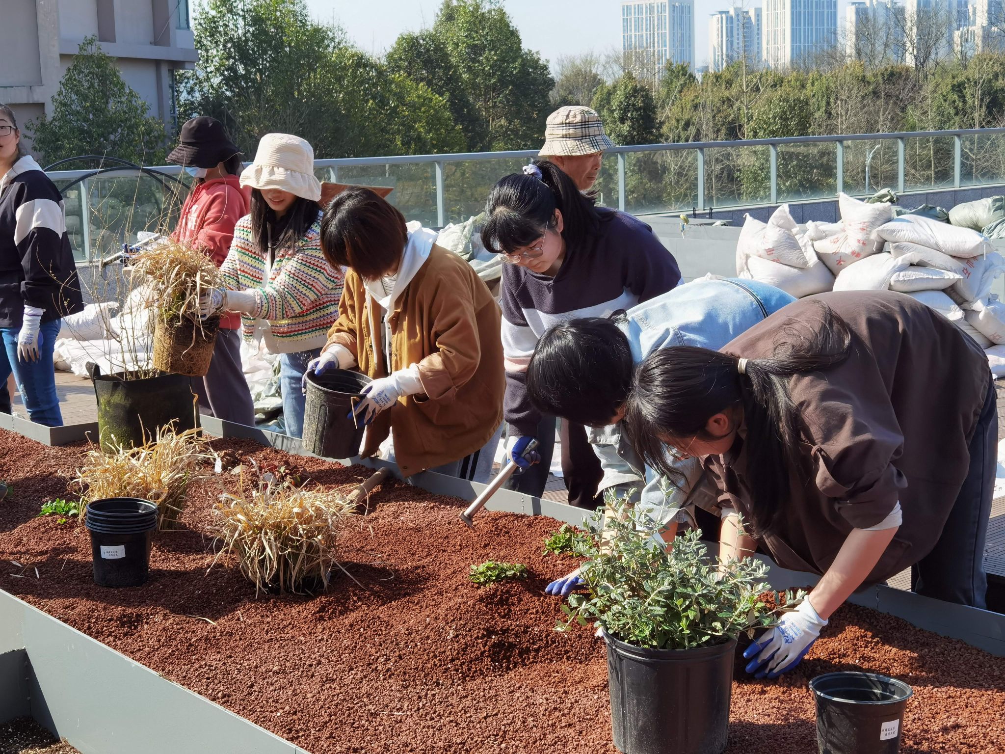 学生在种植植物。