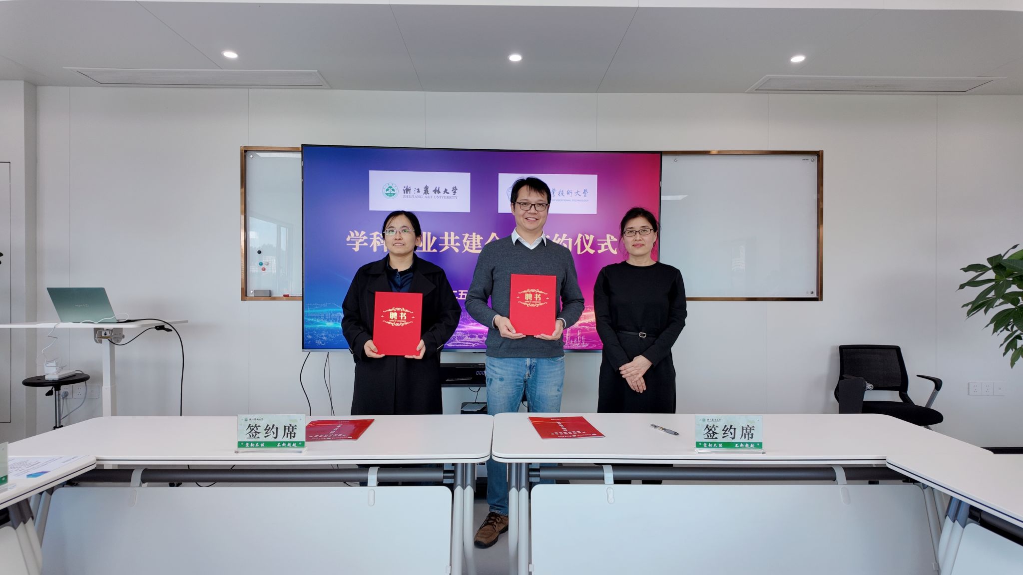 11月13日下午,浙江农林大学动物科技学院·动物医学院与金华职业技术大学在东湖校区举行学科专业共建合作签约仪式。金华职业技术大学副校长陈夙一行,浙江农林大学党委委员、动科动医学院院长宋厚辉,研究生院院长宋丽丽等出席签约仪式。