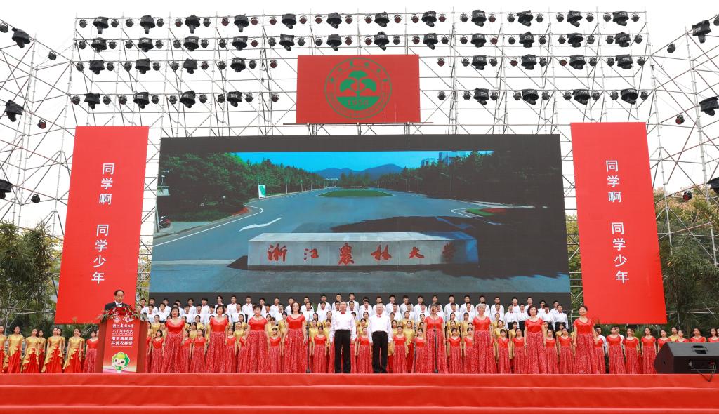 “钱塘澎湃,天目巍然……风华正茂恰少年,华夏栋梁我辈争先……奋发超越,自强不息天行健。”在雄壮豪迈的校歌声中,浙江农林大学建校60周年纪念大会圆满闭幕。