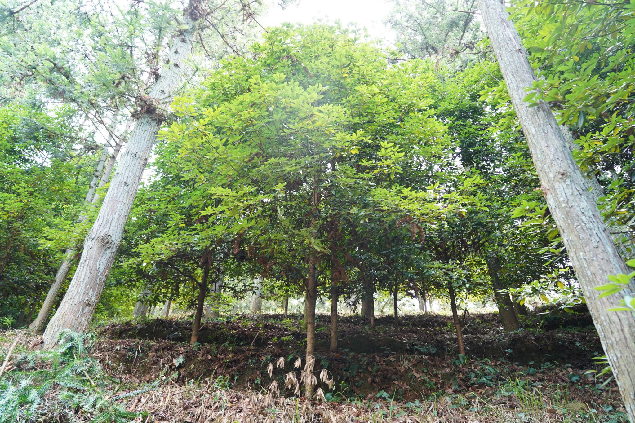 图为杉木林里的小楠木正在茁壮成长。