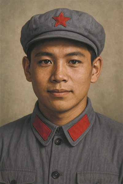 在熊尚林烈士仅存的模糊素描基础上,团队运用图像生成大模型技术构建人像轮廓,通过超分辨率重建技术还原面部细节,再以智能上色技术赋予画像符合历史场景的色彩基调。