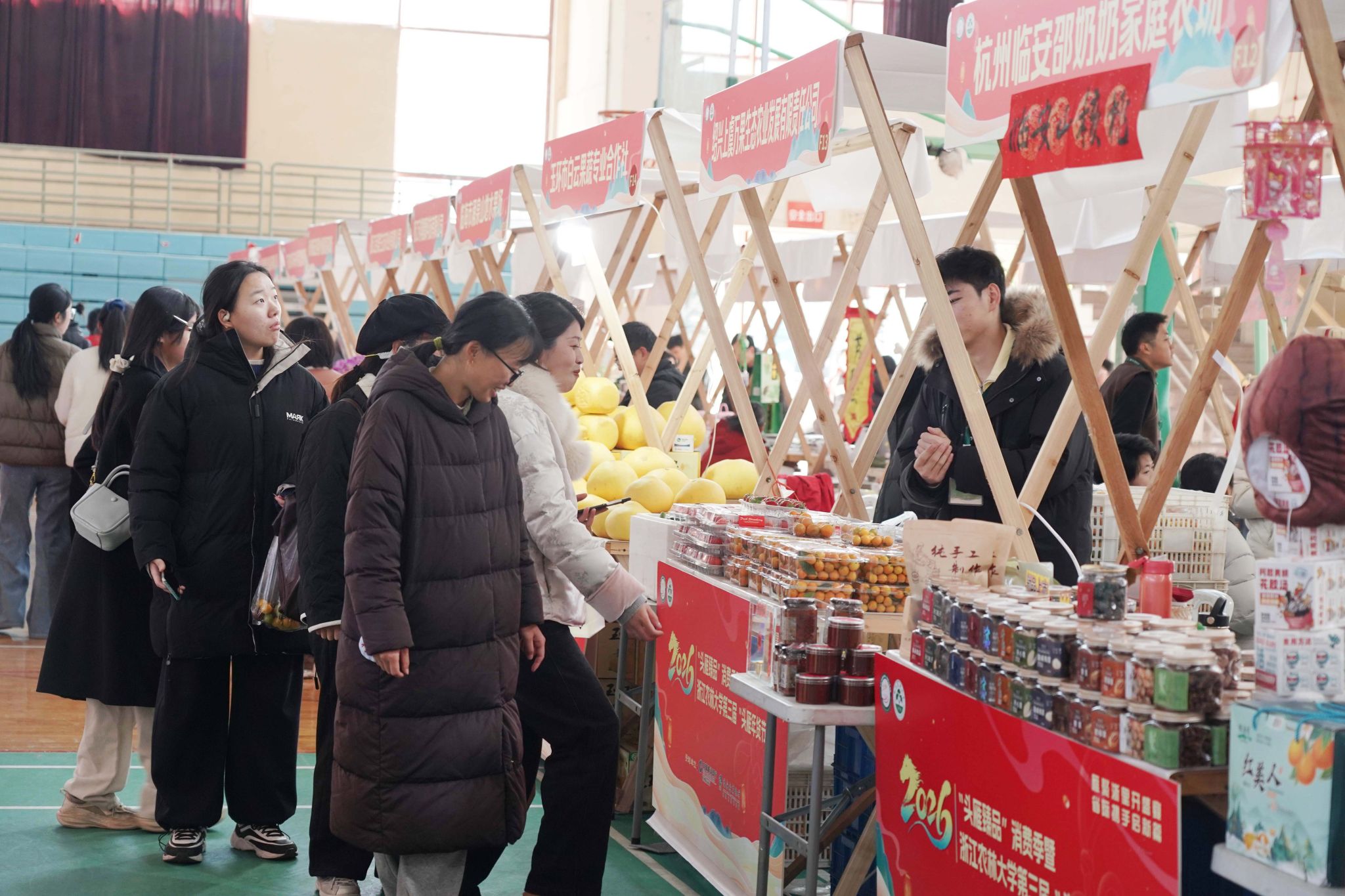 1月9日上午,开云电竞s13体育馆内举办了一场特殊的“年货节”。草莓、山核桃、酱牛肉、蜂蜜、米酒等数千种农产品吸引了不少师生和市民前来选购。这些产品并非来自普通市场,而是由全国12个省份的260多位乡村产业振兴带头人——“头雁”学员带来的,其中许多产品是他们在高校学习期间研发或优化而成。