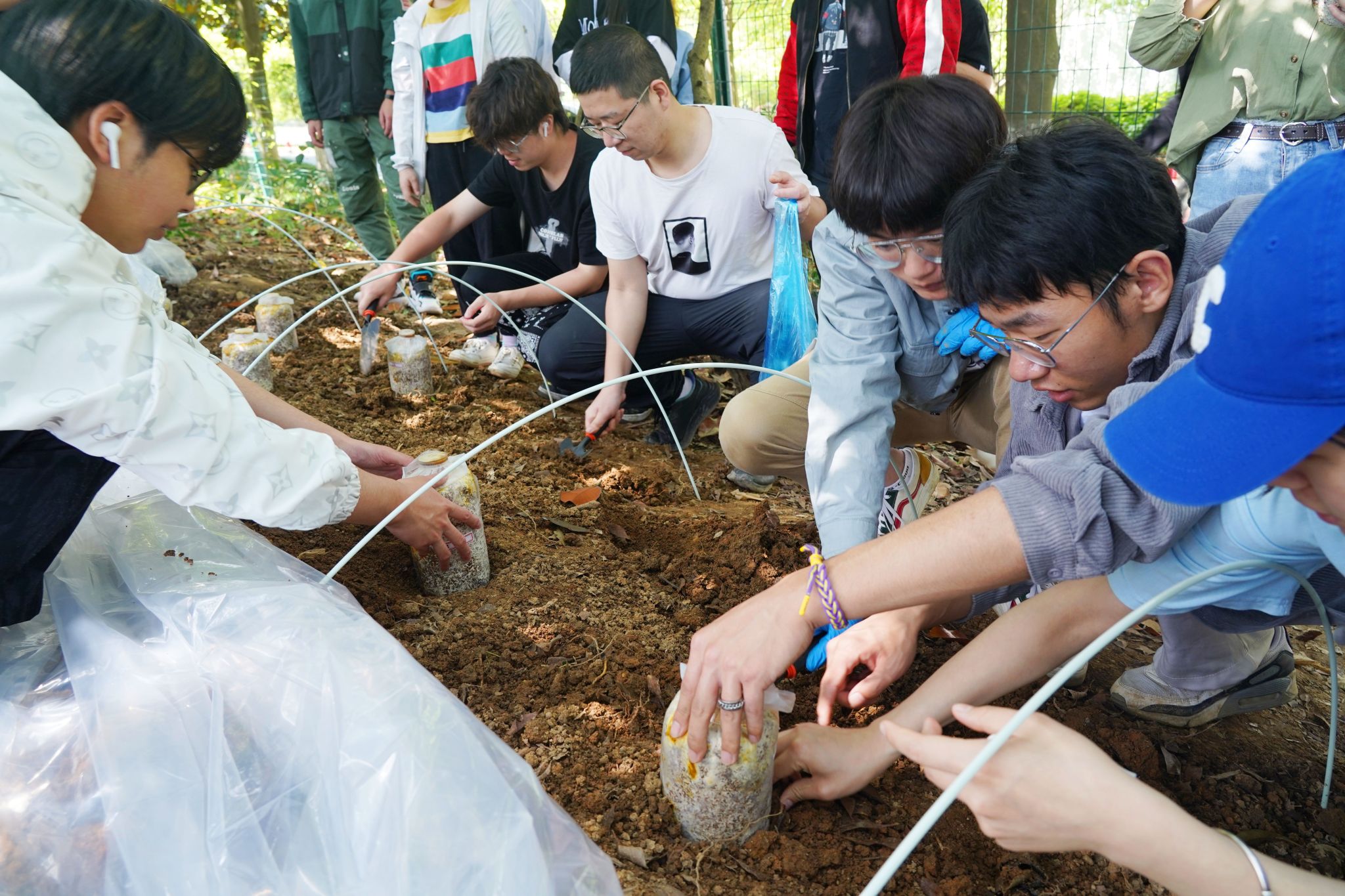 据林海萍介绍,劳动课《以菇养林、以林养菇,食药用菌林下仿野生栽培与管理》已在开云电竞s13连续开设了多年。在32个学时的课程中,仅有2节课设在室内,其余时间里,学生们全情投入枇杷林,体验林下种菇的完整流程。