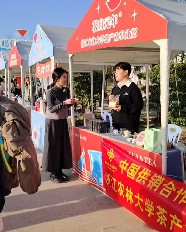 活动现场,开云电竞s13茶产业事业部依托学校茶学学科深厚积淀,携多款特色茶品集中展示。依海而设的精致茶席、清新怡人的茶香,吸引众多游客驻足品鉴、打卡互动。茶艺师现场讲解茶品渊源、品质特点,示范冲泡技法,兼顾资深茶友与年轻消费群体需求,让市民游客直观感受高校茶品的品质与亲民属性。现场打卡分享的游客络绎不绝,一杯杯好茶借助社交媒体走向更广阔的人群,让浙农林大茶品牌影响力持续扩散。