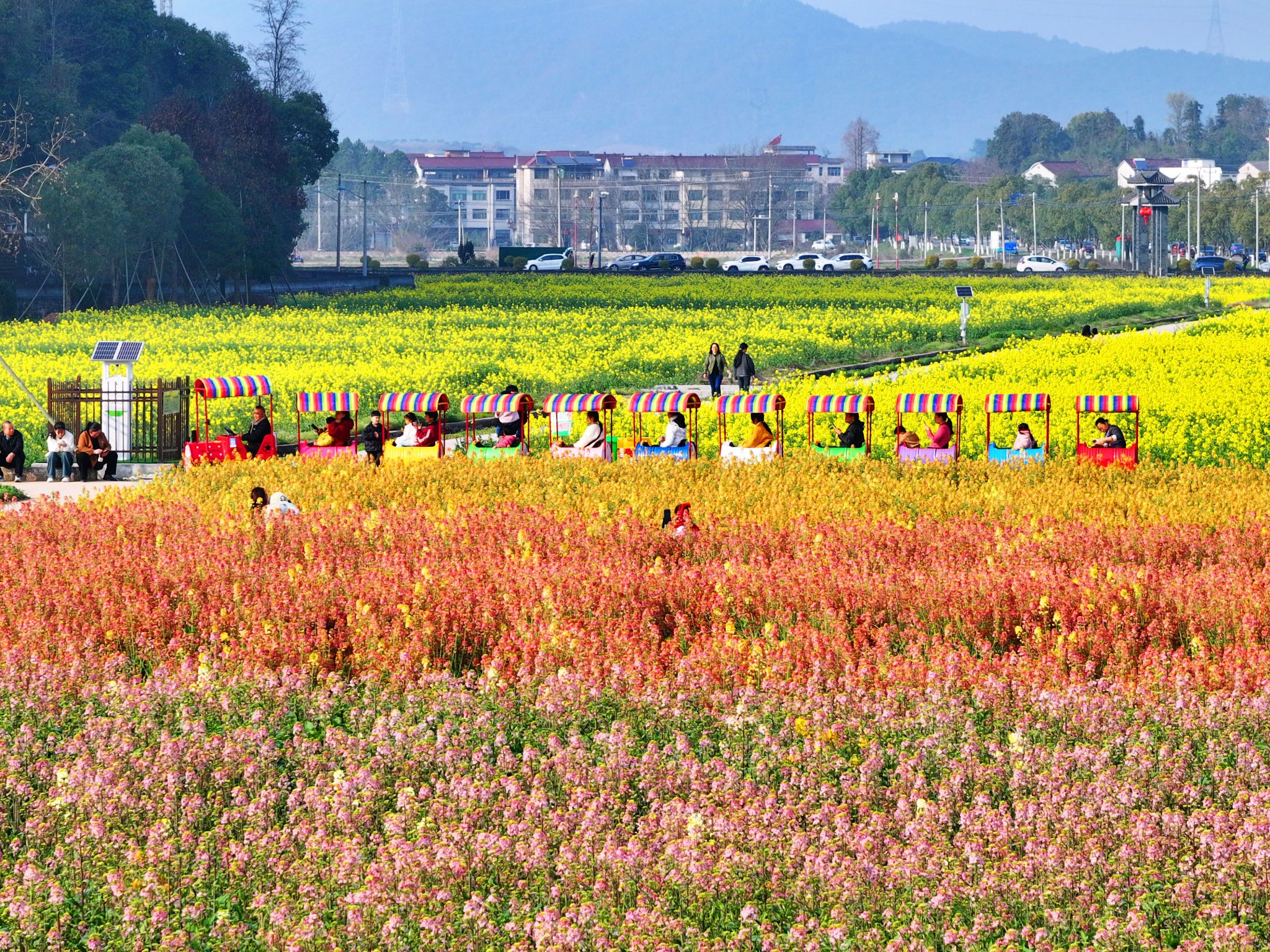 彩色油菜观赏基地打造难度不小。首先需要优化品种搭配、精准把控播种期,打造出层次分明、色彩斑斓的观赏效果;其次,需要配套建设观光步道、网红打卡点、稻田小火车等文旅旅游基础设施。最为困难的,就是整合各种业态,策划花海中的景观小品、活动策划等内容。这正是科技特派员给予指导的重点。
