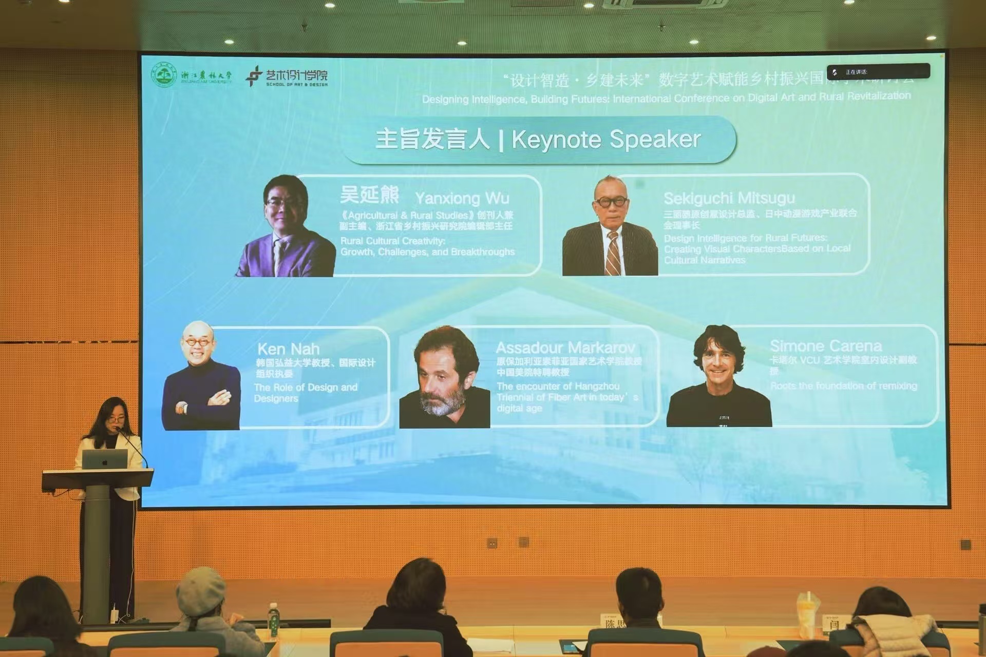 11月27日,由浙江农林大学艺术设计学院主办的“设计智造·乡建未来”数字艺术赋能乡村振兴国际学术研讨会以线上线下结合形式召开。本次会议聚焦设计智慧与数字技术在乡村发展中的深度融合,汇集海内外学术与行业精英,开展跨领域、高层次的思想交流,为设计与科技助力乡村振兴探索新路径、注入新动能。