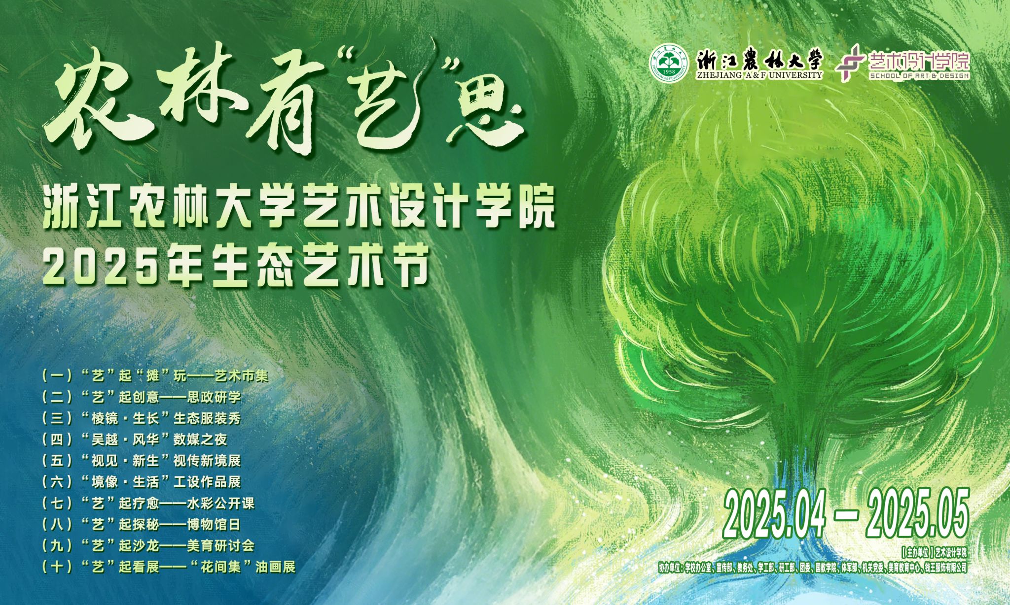为深入贯彻全国教育大会精神,积极响应我校美育工作号召,推动美育育人与生态育人理念深度交融,全方位提升我校师生审美能力与人文素养,引领师生在沉浸式艺术体验中领略艺术的无尽魅力,特举办农林有“艺”思——浙江农林大学艺术设计学院2025年生态艺术节,具体活动方案如下: