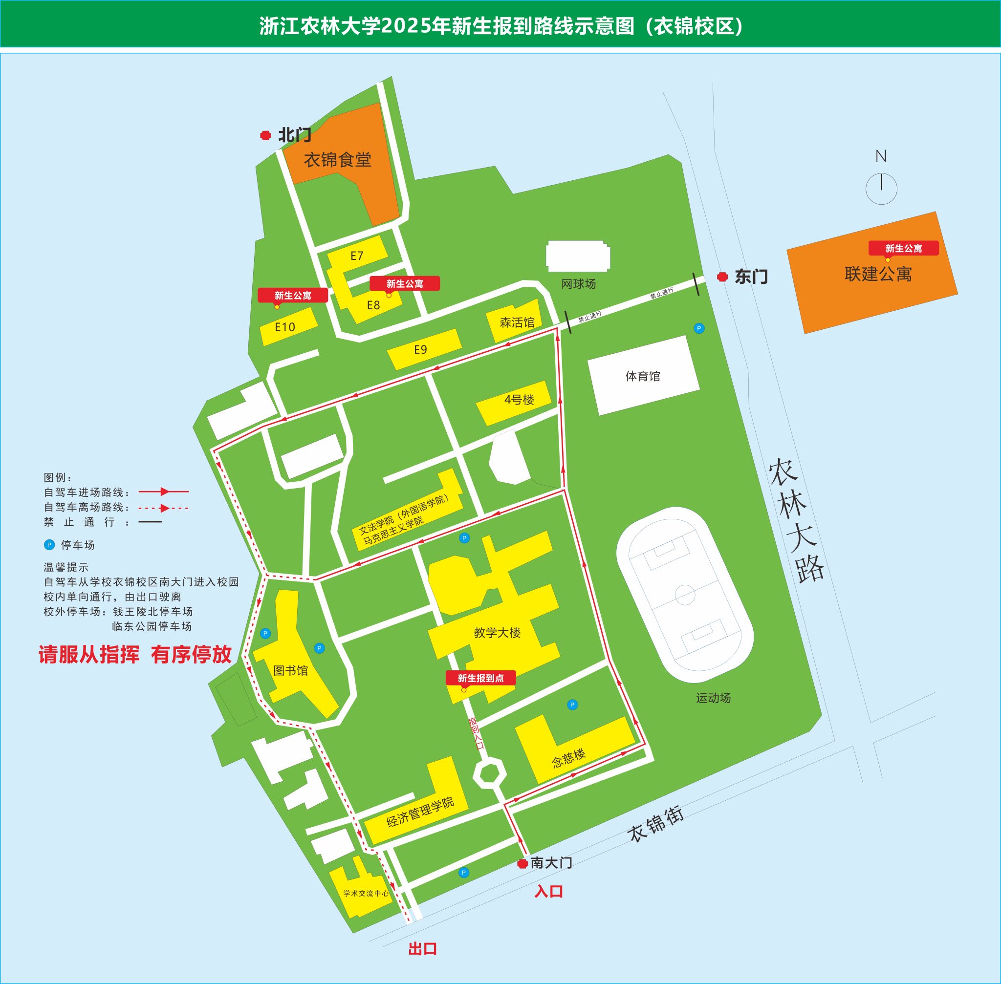 9月13日,学校将迎来2025级新生。为方便新生家长车辆快速通行,校内部分道路实行交通管制,具体安排如下: