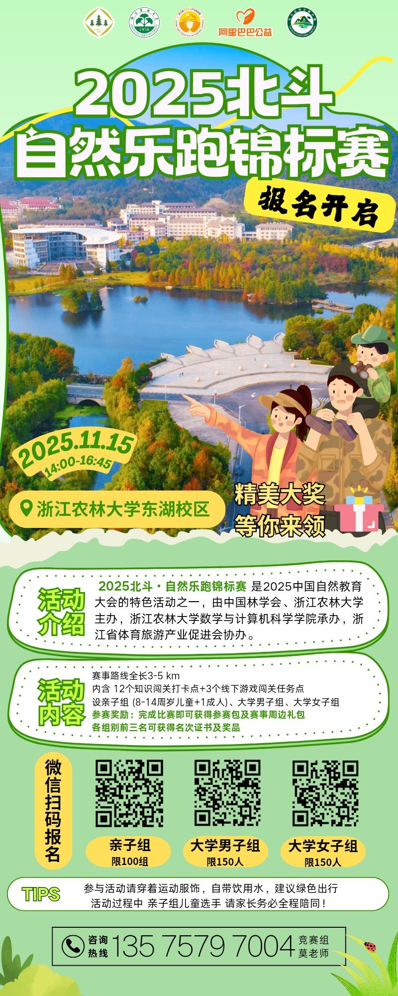 2025年11 月 15 日(周六) 14:00-16:45,3-5KM 关于举办2025北斗自然乐跑锦标赛的通知-开云电竞s13 - 浙江农林大学 在线投稿 首页 校情总览 领导致辞 学校概况 历史沿革 历任领导 现任领导 校园掠影 植物园 组织机构 师资队伍 师资力量 人才招聘 教育教学 本科生教育 研究生教育 留学生教育 集贤学院 继续教育 网络教育 科学研究 科技处 文科处 农林学报 社会服务 社会合作 国际交流 国际合作与交流 国际教育学院 招生就业 本科生招生 研究生招生 留学生招生 继续教育招生 暨阳学院 就业信息 农林文化 学校精神文化 学校标识 学校校歌 校史展厅 文化地图 公共服务 公共事务管理 后勤集团 信息与教育技术中心 webvpn系统 VPN系统 校园实用信息 信息公开网 ENGLISH 通知公告 校内新闻热线:9291819 点击进入在线投稿 首页 - 通知公告 - 正文 关于举办2025北斗自然乐跑锦标赛的通知 【发布日期: 2025-11-12】 【来源:数计学院 】 【作者:数计学院】 【编辑:】 【点击量:】 2025年11月15日(周六)14:00-16:45,3-5KM 赛程+15个趣味闯关点,自然科普、北斗知识答题 + 机器狗闯关、植物辨认等线下任务,积分赢大奖! 一、大学男 / 女组、亲子组专属通道已开启,扫码直接报名! 二、完赛即得电子证书,冠亚季军解锁专属奖品~ 让我们在绿水青山间感受北斗科技力量,边跑边学边闯关。名额有限,手慢无!快约上好友组队,用脚步丈量自然,用科技点亮青春~ 有疑问可电话咨询,赛场见! (数计学院) COPYRIGHT©2011开云电竞s13 WWW.ZAFU.EDU.CN 学校地址:浙江省杭州市临安区武肃街666号 邮编:311300 电话:0571-63732700浙ICP备11046845号-1 浙公网安备33018502001115号 map