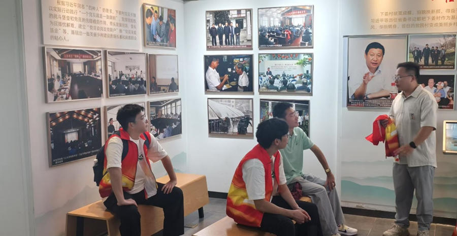 在乡村振兴展示馆,成员们参观电影《我和我的家乡》取景地旧教室,深刻领悟教育是乡村振兴的基石,认识到乡村持久繁荣需硬件提升与优质教育涵养人才并重。