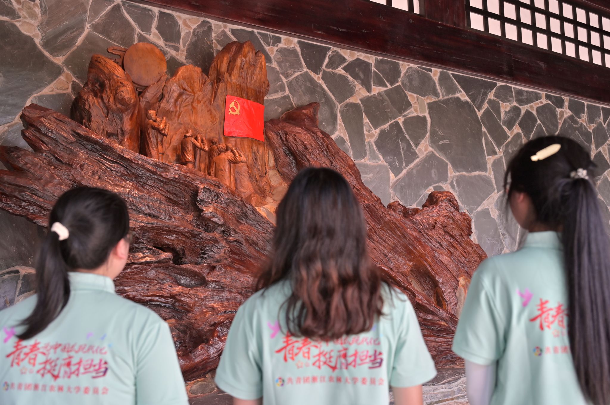 实践团在开化县的实践活动以“寻红根”作为序章,参观了浙西革命纪念馆。馆外的千年古樟成为红绿交融的见证。实践团成员现场采集数据,将红色教育与生态保护结合。“寻红根,生绿叶”,团队成员在实践中强化了责任感与使命感。