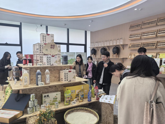 在参观中,负责人重点介绍了杭州禹上稻乡经营管理有限公司的创新运营模式。该公司通过打破原有行政边界,对覆盖八村的资源进行统一品牌运营与流量管理,构建了高效的协同发展平台。其中,极具特色的“数字稻田认养”模式引发了大家的浓厚兴趣,该模式通过数字化手段连接城乡,让消费者能够远程参与农耕并见证收获,是智慧农业与体验经济融合的生动实践。在水稻科技小院,团队近距离考察了农业科研如何直接服务生产一线,感受了科技成果快速转化的“小院模式”。