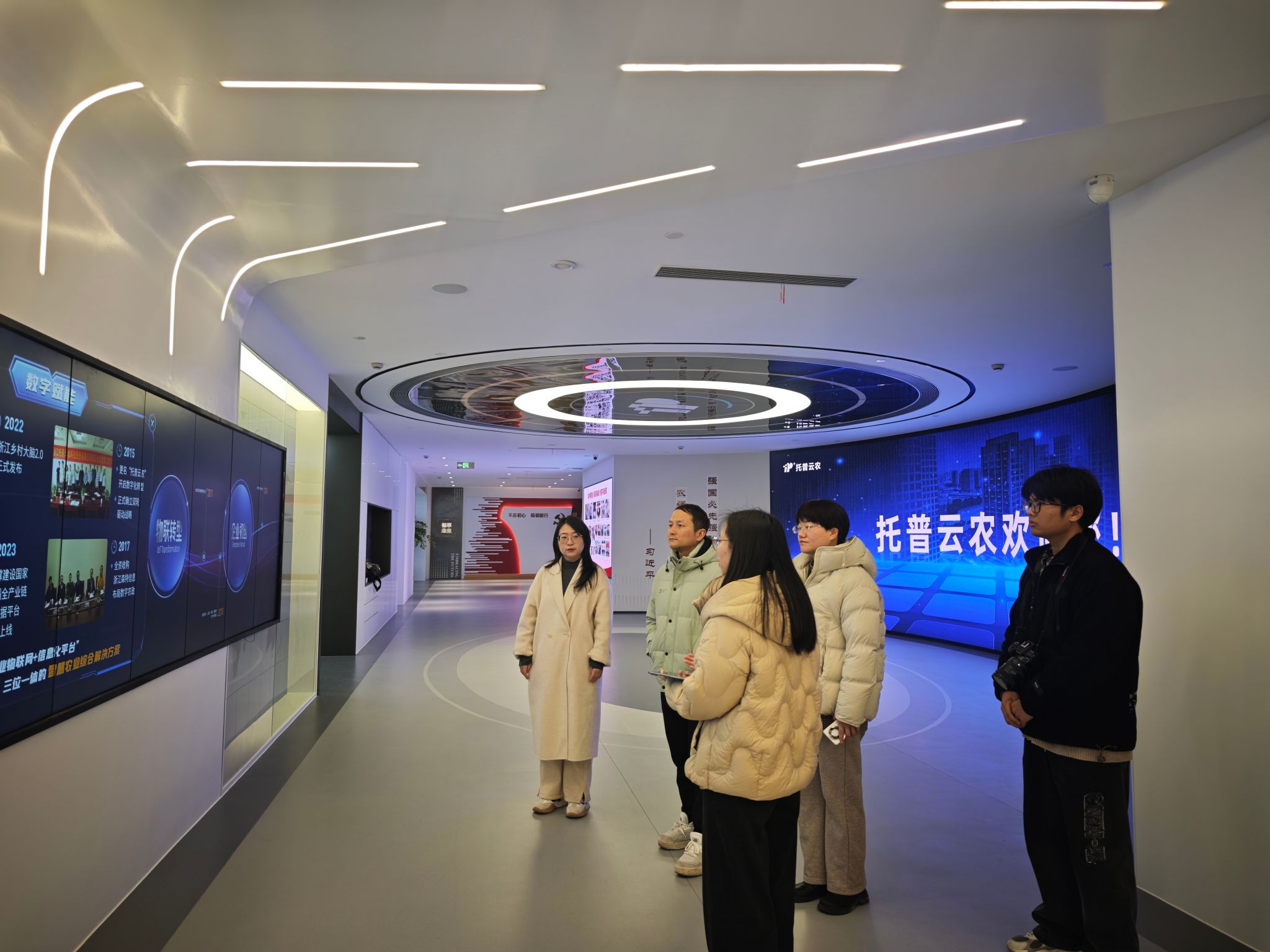 在企业相关负责人的陪同下,学院一行实地参观了托普云农智慧农业展厅,沉浸式体验了企业在农业物联网终端、智能硬件装备研发、农业大数据平台建设等方面的最新成果。通过产品演示与技术讲解,深入了解企业“硬件+软件+服务”一体化现代农业服务模式,以及在数字农业建设、农业农村信息化服务的创新实践与行业优势。