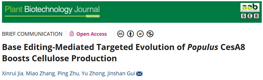 近日,开云电竞s13桂金山教授团队在国际知名期刊《Plant Biotechnology Journal》在线发表题为“Base Editing-Mediated Targeted Evolution ofPopulusCesA8 Boosts Cellulose Production”(《碱基编辑介导的杨树CesA8基因定向进化促进纤维素产量提升》)的研究论文。该研究通过引入高效脱氨酶TadA8e和广谱识别SpRY-Cas9变体,构建出新型腺嘌呤碱基编辑器pABE8e,系统靶向修饰了杨树纤维素合酶复合体中的多个基因(CesA8、CSI1、KOR),成功实现对纤维素合成关键基因CesA8的定向进化,显著提高了杨树的纤维素产量和木纤维品质。