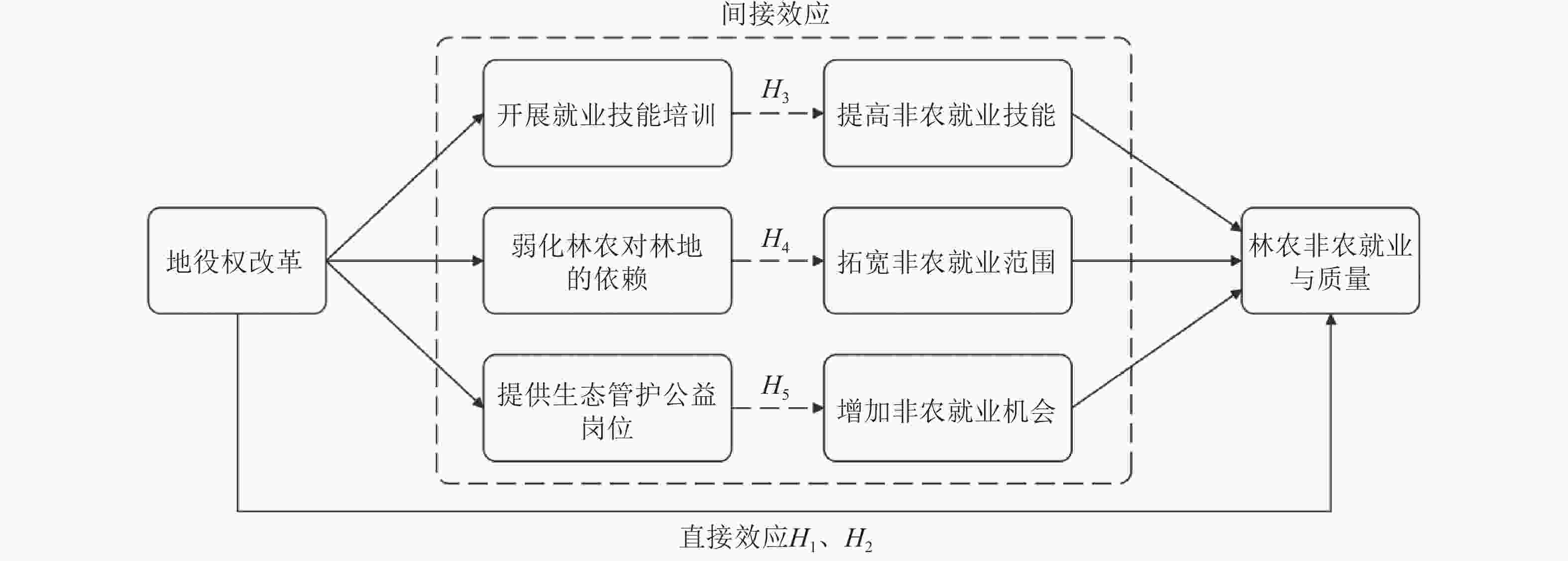 结果双重差分模型基准回归结果和倾向得分匹配-双重差分模型回归结果表明:地役权改革对林农非农就业、非农就业收入、非农就业稳定性均在1%的显著性水平上存在正向影响。机制检验表明:地役权改革可以通过职业技能培训、拓宽非农就业范围、增加非农就业机会来促进林农非农就业,提高林农非农就业质量。从户主年龄、家庭人口负担和区域角度进行异质性分析,进一步检验了地役权改革对林农就业的显著正向影响。