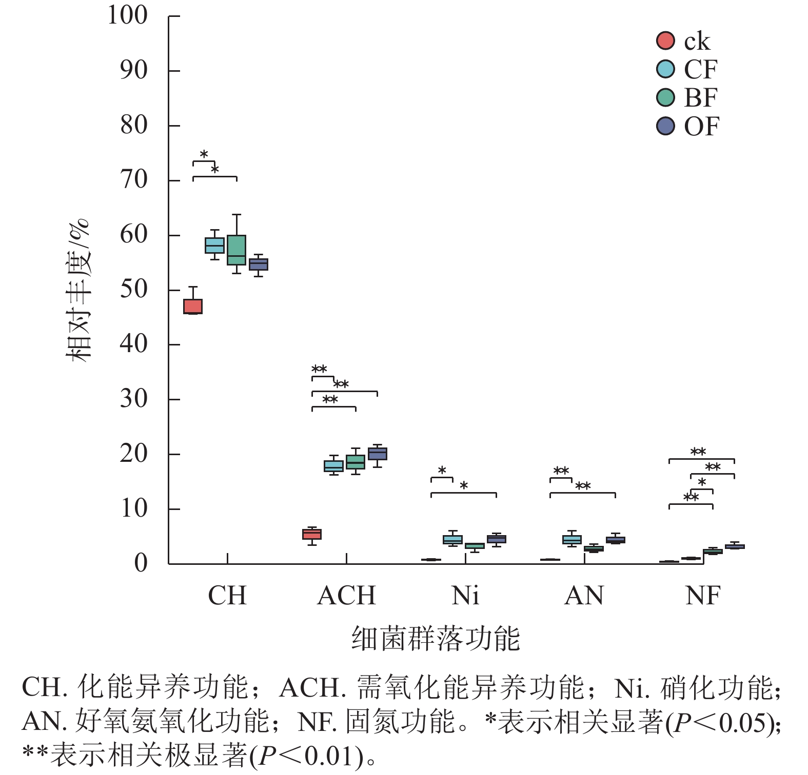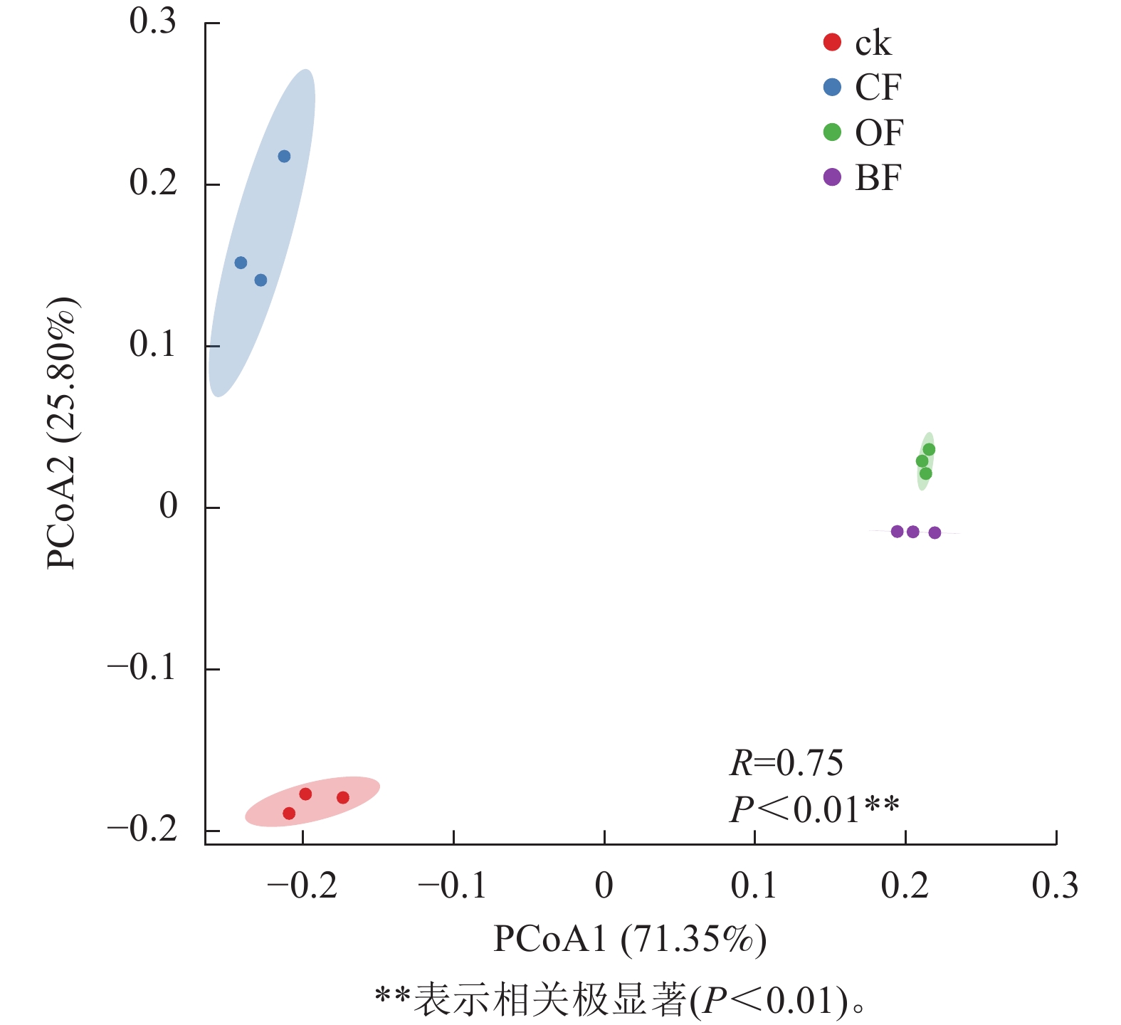 结果与CF处理相比,OF和BF处理显著提高了土壤有机碳(SOC)、可溶性有机碳(DOC)和微生物量碳(MBC)质量分数(