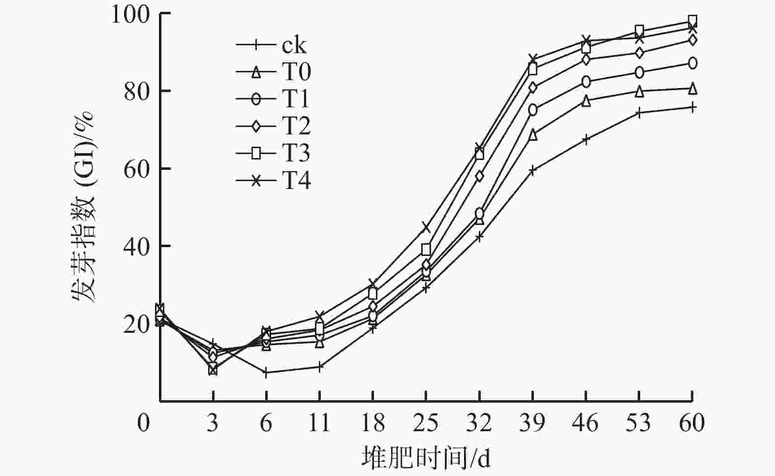 Eisenia foetida进行60 d蚯蚓堆肥,测定各处理最终堆肥中蚯蚓生长和繁殖指标、堆肥产物理化性质和发芽指数(germination index,GI)。