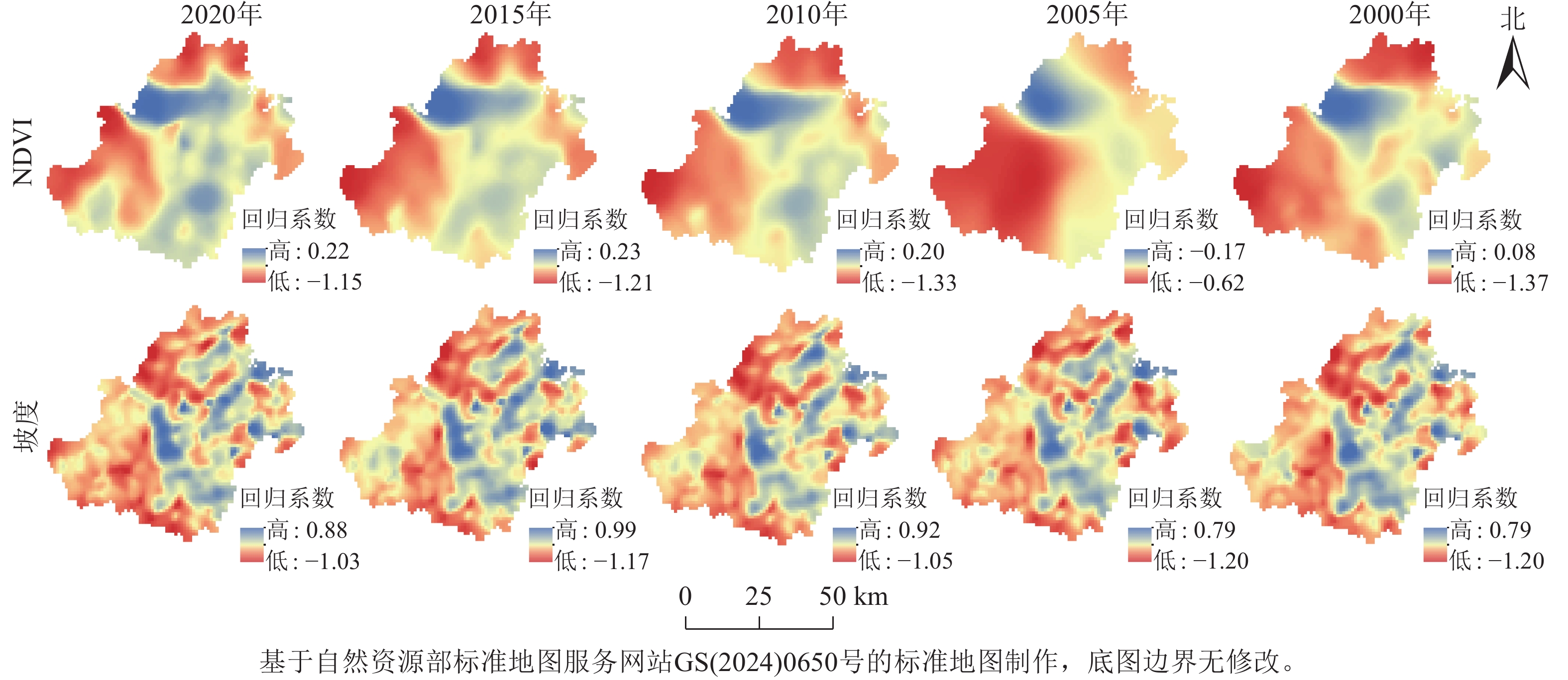 结果①2000—2020年,新化县耕地面积持续下降,而建设用地面积则不断扩张;2015—2020年,新化县景观类型转移强度最大,景观类型转化更加复杂。②从类型层面看,新化县林地斑块优势度最大,呈上升趋势,耕地斑块优势度下降。耕地、林地和建设用地破碎度加剧,边缘形状复杂化,斑块形状不规则化;从景观层面看,景观形态更为复杂,斑块数量增加,景观连通性差,景观多样性逐渐增强。③归一化植被指数(NDVI)、人口数量和高程是影响景观格局的主要驱动因子。自然因素和人为活动因素之间的交互作用明显强于单一因子的独立作用。NDVI和坡度对景观格局的影响存在空间异质性,其中NDVI在大部分区域对景观格局产生负向影响,而坡度则在空间上体现为正负影响共存的特征。