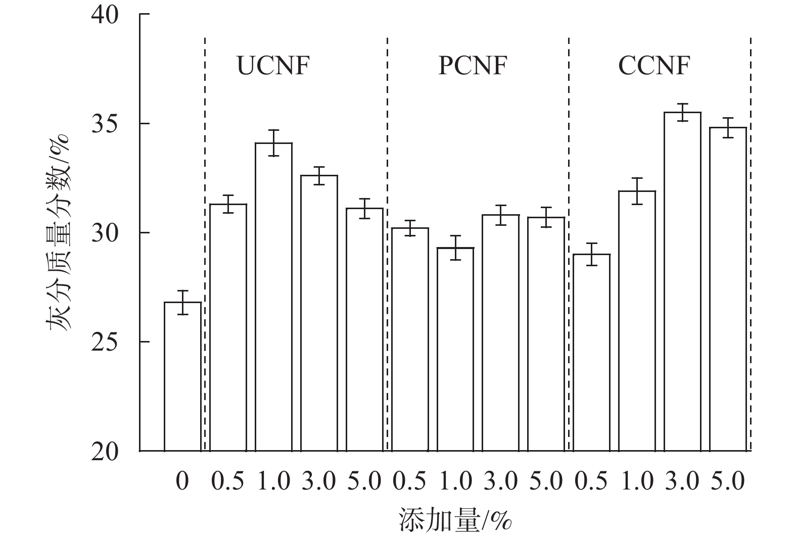 方法对竹浆分别采用磷酸化和阳离子化预处理,结合机械研磨方法,制备竹基磷酸化CNF (PCNF)和阳离子化CNF (CCNF),并以直接研磨的竹基CNF (UCNF)为对照组。在此基础上,考察竹基CNF浓度对装饰原纸的干湿强度、助留效果和透气度等性能的影响。