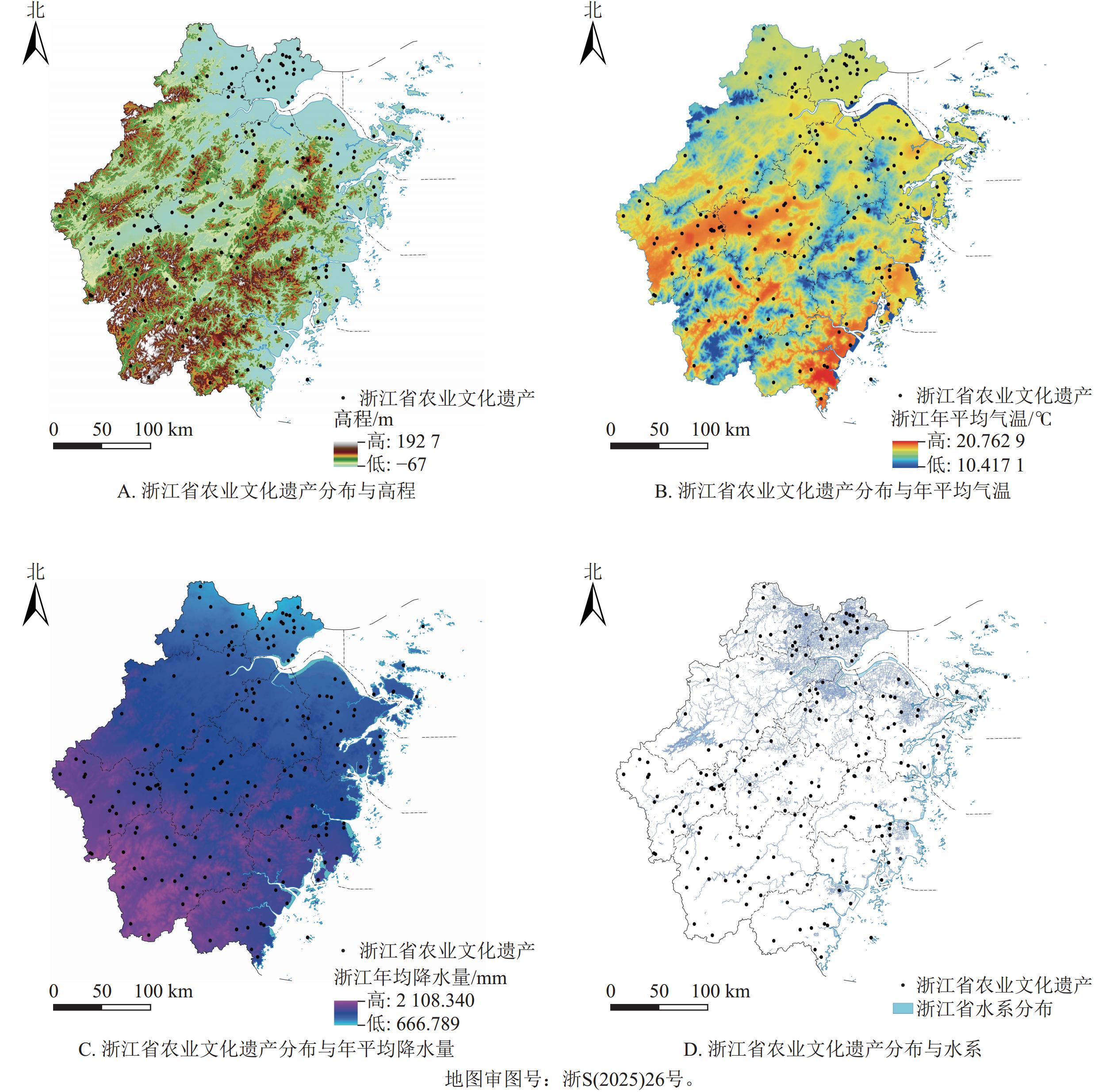 方法基于浙江省农业农村厅2024年认定的205处农业文化遗产,利用ArcGIS 10.2分析其空间格局、形态和集中程度,结合浙江省的地形对农业文化遗产进行空间分类,并分析其影响因素。
