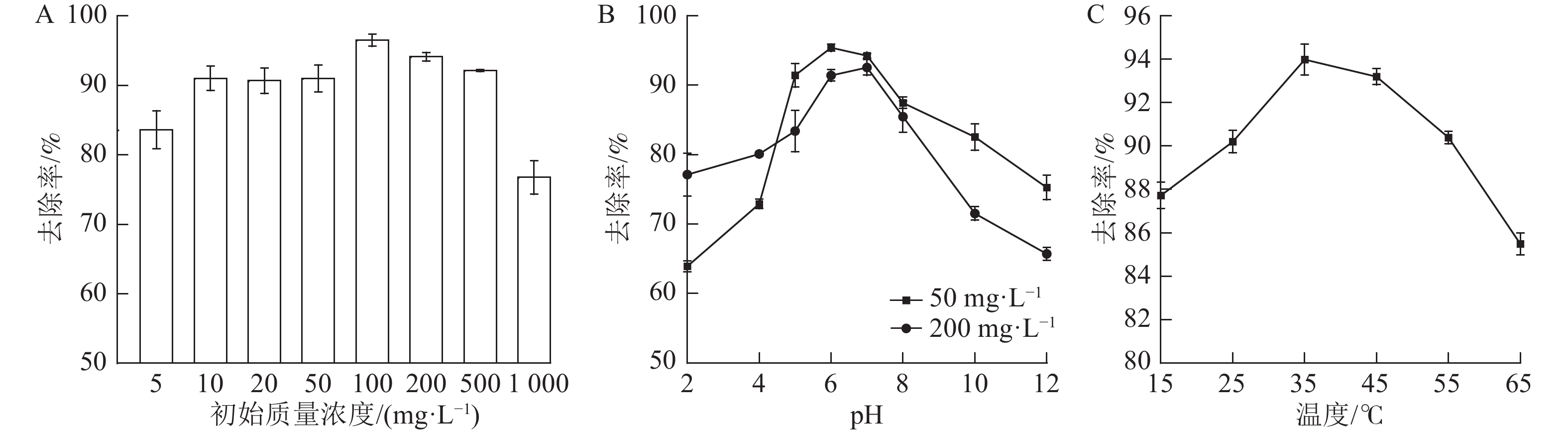 结果HPAAM-VIM-LS呈现三维多孔网络结构,表面富含羟基、羧基及咪唑阳离子基团赋予材料丰富的活性位点,材料热分解温度大于189.9 ℃,拉伸应变达746%,弹性模量为15.15 MPa。在pH 6.0、温度35 ℃条件下,HPAAM-VIM-LS对CR的去除率达96.4%,最大吸附量为490.58 mg·g