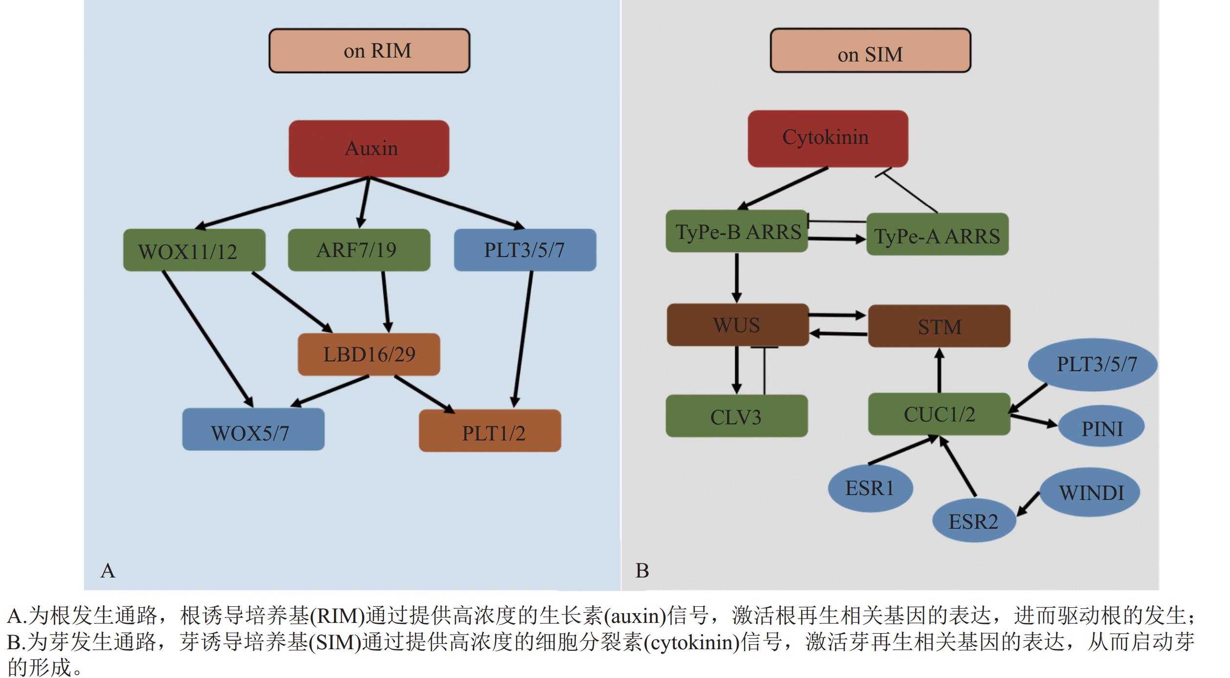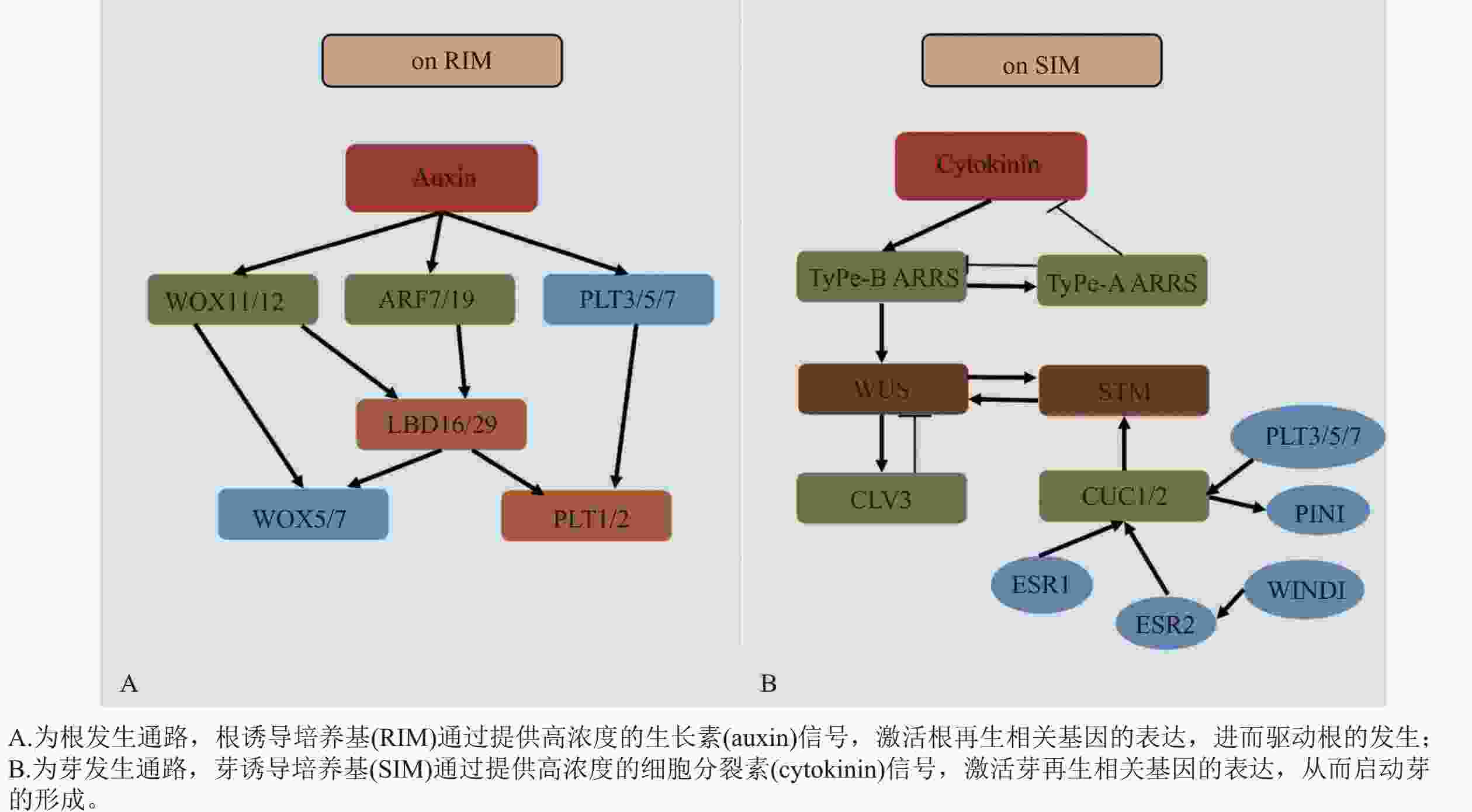 木本植物的高效遗传转化与无性繁殖是实现其遗传改良与产业化的核心环节,然而当前器官发生型再生体系在成年材料中普遍存在生根困难、褐化严重及强基因型依赖性等技术瓶颈,严重制约了相关育种与繁育进程。本研究系统梳理了影响再生效率的关键外部因素,包括外植体选择、培养基优化以及植物生长调节剂的配比与处理时序。在分子机制层面,重点阐述了从愈伤诱导到不定根/不定芽形成过程中的细胞与分子调控机制,揭示了生长素信号(ARF-WOX-LBD通路)调控不定根发生以及细胞分裂素信号(ARR-WUS-CLV3环路)调控不定芽建成的核心机制。针对成年材料生根困难和高酚品种褐化严重等技术瓶颈,提出了结合生理与表观遗传调控的综合对策。本研究分析指出:木本植物器官发生能力受外部培养条件、内部激素通路与表观遗传状态的共同调控,成年材料再生障碍的本质在于再生相关基因在表观层面被系统性抑制。未来通过深化机制解析与技术创新,将有望系统突破木本植物再生障碍,为林木精准育种与基因功能研究提供体系支撑。图1表2参82