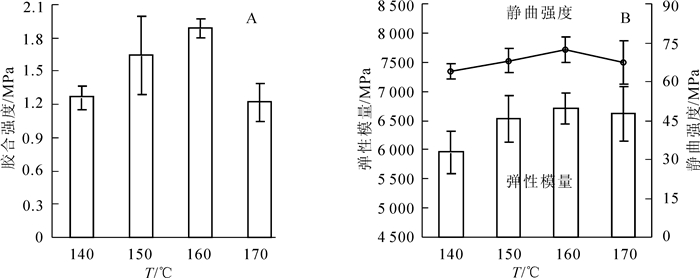 为了研究热压温度对硅烷化杨木(107杨Populus×euramericana)单板/高密度聚乙烯(HDPE)薄膜复合材料各项性能的影响,以乙烯基三甲氧基硅烷(A-171)和过氧化二异丙苯(DCP)为杨木单板的改性剂,在不同的热压温度下(140,150,160,170 ℃)与HDPE薄膜复合制备了硅烷化杨木单板/高密度聚乙烯(HDPE)薄膜复合材料。采用万能力学试验机、动态力学分析仪(DMA)和冷场发射扫描电子显微镜(SEM)测定了不同热压温度下复合材料的物理力学性能、动态热力学性能以及胶接界面结构的变化。结果表明:热压温度为140~150 ℃时,复合材料的界面结合力较弱,胶接界面层存在明显的缝隙。当热压温度达到160 ℃时,硅烷化杨木单板与HDPE大分子自由基发生充分有效的胶合,形成能有效提高复合材料性能的胶接界面结构。当热压温度从140 ℃升高到160 ℃时,胶合强度、静曲强度(MOR)和弹性模量(MOE)分别由1.27 MPa,63.90 MPa和5 970.00 MPa增加到1.89 MPa ,72.20 MPa和6 710.00 MPa,但热压温度继续增加,胶合强度和抗弯性能均降低。当热压温度从140 ℃增加到170 ℃时,复合材料24 h吸水率(WA)和吸水厚度膨胀率(TS)分别从72.41%和4.98%降至54.22%和4.09%。复合材料的储能模量保留率E′(130 ℃)由62.31%提高到92.01%,到达tanδmax的温度点从144 ℃延后至200 ℃。复合材料的耐高温破坏能力随着热压温度增加逐渐增强。图5参15