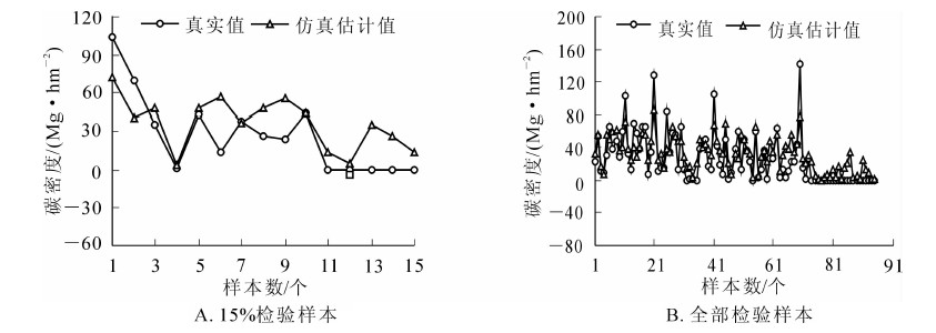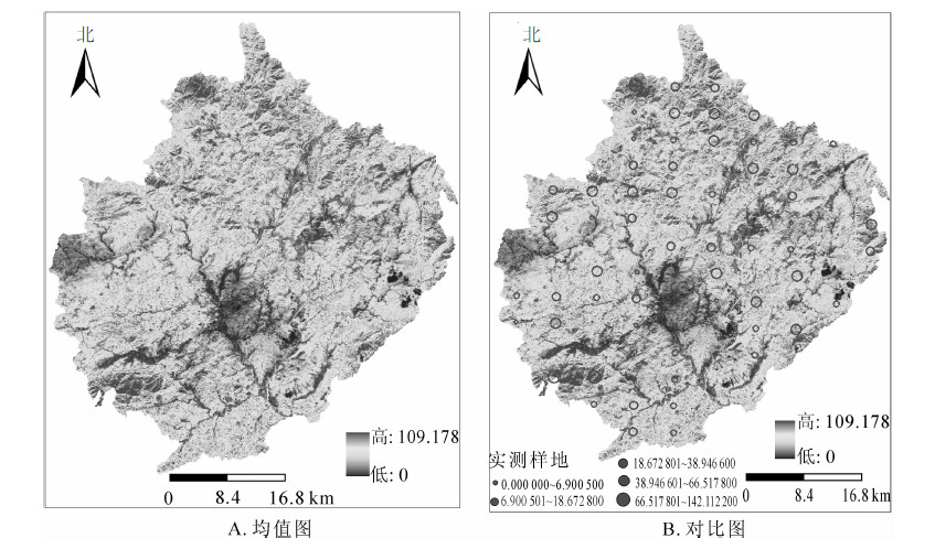 森林碳储量是反映森林生态系统生产力的重要指标,也是区域森林碳汇计量的基础。以浙江省开化县为研究区,采用2013年资源3号遥感影像与2014年森林资源清查样地数据,结合序列高斯协同模拟方法对全县地上部分森林碳储量及其分布进行估计,并以平均误差、残差平方和、平均相对误差以及均方根误差4个指标为基础对估计结果进行精度评价。结果表明:开化县2014年森林总碳储量空间协同仿真估计结果为7.221 573 Tg,碳密度值分布为0~109.178 0 Mg·hm-2,均值为32.376 4 Mg·hm-2,基于15%检验样本的平均相对误差为4.565%,仿真估计碳总量在实测样地估算的置信区间内。本研究发现,遥感影像与地面样地森林碳密度的相关性随遥感影像的空间分辨率变化而变化,这对于提高森林碳储量估计精度有着重要意义,也是下一步研究的重点。图5表3参29