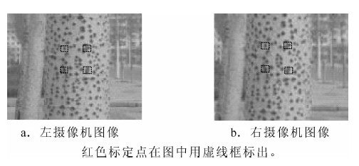 为提高林木生长状态测量的准确性,克服传统测量方法的不足,从视差处理的角度出发,根据不同时间点采集到的树木图像信息,通过采取特征点提取方法,判断出一段时间内树木生长状态的变化情况。试验过程中,将待采集图像的树木上标出红色的矩形信息点,并利用双摄像机针对标出的特征点进行采集,然后将2幅树木图像进行对比研究, 分别计算出在一定时间间隔内树木上信息点空间信息,从而确定该段时间内信息点的位置变化。试验结果表明:针对标定的信息点,传统测量方法在高度和粗度上数值相近,与林木生长实际不符;而基于视觉技术的测量,其测量结果与林木的实际增长过程是一致的,能够很好地实现对树木的无损测量研究,判断出树木的生长状态变化情况。图4表1参22
