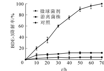多溴联苯醚(PBDEs)作为阻燃剂被广泛使用。因为它对人类的器官、神经系统和免疫系统的危害以及向周边环境的不断迁移,已经逐渐成为人们迫切需要处理的污染物之一。以同系物4-溴联苯醚(BDE-3)作为降解对象,将海藻酸钠和生物碳混合制成微球制剂,对该制剂吸附BDE-3的潜力、机制及添加降解菌Sphingomonassp. DZ3后微球菌剂的吸附增益效应进行研究。结果表明:2%的海藻酸钠为微球制备的最佳质量浓度,该微球制剂在液相中的吸附过程符合Lagergren准一级动力学方程和Elovich方程,微球的最大吸附量为28.6 mg·g-1。用添加微生物的微球菌剂对BDE-3污染水体进行修复时发现,微球菌剂在溶液中能加速BDE-3的降解,与游离的微生物相比,差异达极显著水平(P<0.01)。利用Monod降解动力学方程对该降解过程进行拟合,得到降解动力学方程为υ=υmax·S/(KS+S)=14.29·S/(31.71+S)。