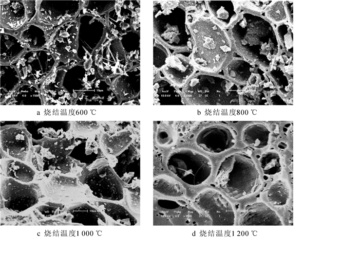 以精刨竹碎料和酚醛树脂为原料,采用高温真空炭化烧结工艺制备了竹材陶瓷,研究了烧结工艺对竹材陶瓷性能、物相组成和微观结构等的影响。结果表明:①烧结温度对竹材陶瓷的尺寸收缩率有较大影响,当烧结温度为600~1 200 ℃时,竹材陶瓷的尺寸收缩率大于20%范围内;②竹材陶瓷的密度减少率在600~1 000 ℃范围内,随着烧结温度的升高逐渐降低,在1 000~1 200 ℃范围内,随着烧结温度的升高逐渐增加;③随着烧结温度的升高,竹材陶瓷的炭得率降低、静曲强度和弹性模量升高、石墨化程度逐渐增强;④酚醛树脂经高温炭化后形成的硬质玻璃碳对竹材细胞起填充、强化作用;⑤竹材陶瓷的较佳烧结温度范围为800~1 000 ℃。图7参15