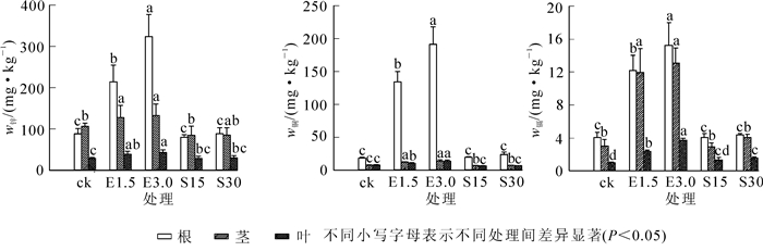 以毛竹Phyllostachys edulis幼苗和重金属污染土壤为研究对象,通过土柱淋洗试验,施加乙二胺四乙酸(EDTA,1.5和3.0 mmol·kg-1)和有机酸(15.0和30.0 mmol·kg-1),研究了毛竹叶片叶绿素荧光特性、毛竹各部位重金属质量分数、土壤液中重金属质量分数和EDTA质量浓度的变化。结果表明:施加EDTA和有机酸都抑制毛竹叶绿素荧光特性,且在30.0 mmol·kg-1的有机酸处理下,毛竹叶片叶绿素荧光特性受到的抑制效果最为显著。EDTA施加能够促进毛竹对锌、铜和镉的吸收,而有机酸处理对毛竹吸收重金属无促进作用,施加3.0 mmol·kg-1EDTA对表层土壤中铜、锌和镉的活化作用最强。20和40 cm土层土壤溶液中重金属质量分数随时间慢慢积累,分别在第4次收集后达到稳定和在最后一次收集液中达到最大;而添加有机酸后土壤溶液中重金属质量分数则在第2次土壤收集液中达到最大,随后逐渐降低。土壤溶液中EDTA主要集中在5 cm土层,且随时间增加显著降低,在5~9 d内EDTA质量浓度相对稳定,分别为110.9~122.9和257.8~263.3 mg·L-1。综上,EDTA可以有效地提高重金属生物有效性,强化植物修复重金属污染土壤,但使用时应综合考虑其环境风险。