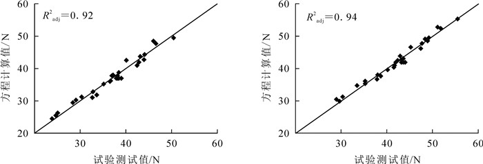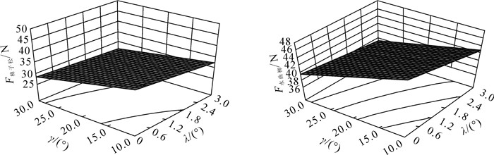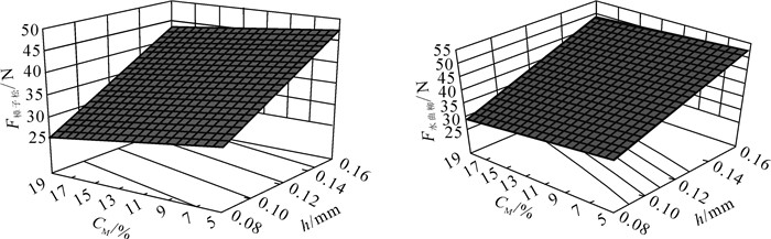 木材锯切为闭式切削,其中侧刃的作用不可忽视。为探寻锯切过程中侧刃对切削力的影响并将其量化,采用不同锯料角锯齿对樟子松Pinus sylvestris和水曲柳Fraxinus mandshurica做单齿切削力试验,利用响应面分析法中的四因素三水平的Box-Behnken Design(BBD)试验设计和建模方法,研究了锯料角、切削厚度、含水率和刀具前角等参数对切削力的影响,并建立切削力模型。结果发现:采用响应面法建立的木材切削力多元回归数学模型,可较为有效地反映切削力与各因素之间的关系(R2=0.92和R2=0.94);在闭式切削过程中,锯齿的锯料角对切削力有一定影响,且随着锯料角的增加,切削力缓慢降低;切削厚度对切削力影响显著,其次是刀具前角,木材含水率、锯料角对切削力的影响最小。