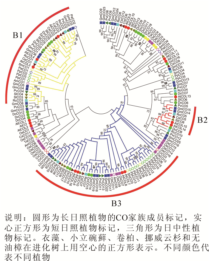 CONSTANS(CO)是植物响应光周期调节的重要基因和监测日照长度的重要元件,可将光信号和生物钟信号转变为开花信号,激活下游基因(FT)的表达,从而诱导植物开花。选取14个已被测序的物种,采用生物信息学手段,从外显子-内含子结构、基因重复、基因差异表达等方面开展CO基因家族研究。结果表明:14个物种共鉴定到159个CO家族成员,CO基因常以多拷贝的形式存在,多数含2~4个外显子,在进化过程中表现出多样性。CO家族重复基因的扩张与基因组重复相关。CO在水稻Oryza sativa根、旗叶、花和种子中均有表达,花芽到花的转变过程中OsCO3的表达量上升,而OsCO7下降,说明水稻CO家族成员之间存在功能差异。