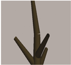 通过讨论树体枝干几何建模的理论和方法,重点围绕树木交互式建模技术和三维可视化实现进行了研究探讨。实现过程主要分为3步:首先,对真实树木枝干的几何形态结构进行分析,利用分析结果构建枝干模型生成方法,用六边形棱柱近似模拟树干和枝段,再用六边形棱台作为枝段元经过连续偏转、连接的方法模拟枝干弯曲的形态。其次,基于枝干生成方法,利用分形迭代思想实现整株树体的建模。为提高仿真度,通过加入干扰因子使最终生成的树体枝干模型不过于规则。最后,为实现模型的可视化,选用OpenGL图形技术和Visual C++作为模型可视化工具和开发工具,通过对所建立的模型进行数学描述以及场景渲染和特征参数提取,建立一个支持交互的三维树木建模系统。