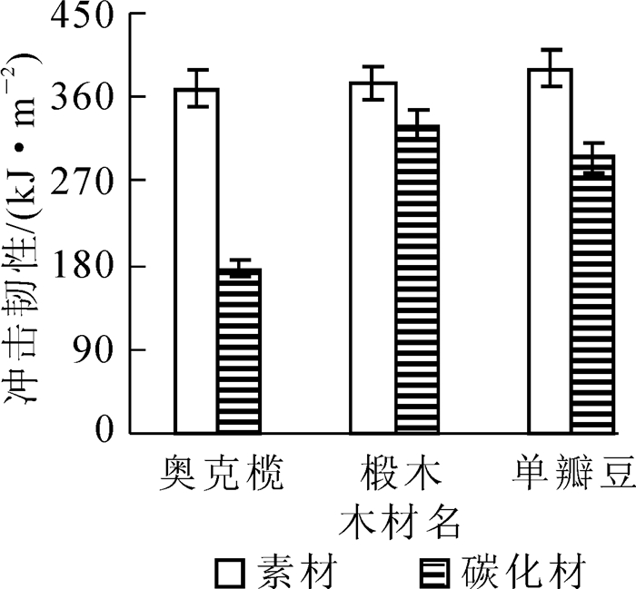 对比了奥克榄Aucoumea klaineana,椴木Tilia europaea,单瓣豆Monopetalanthussp.等3种木材在同一炭化条件下物理力学性能的变化,探究负压轻炭化处理木材的可行性与实际效果。将3种木材分别置于真空炭化箱内以160℃,0 MPa的条件处理3.0 h,然后将木材按照国标规定的木材物理力学试材锯解及试样截取方法加工,之后分别测量木材的密度、色差、冲击韧性、抗弯强度、抗弯弹性模量、硬度、干缩率和湿胀率。结果表明:在该炭化工艺下单瓣豆的体积干缩系数降低了16.00%,尺寸稳定性有较大改善;抗弯强度增加了18.00%,径面、弦面和端面硬度分别增加了19.00%,33.00%和50.00%,冲击韧性损失24.00%。负压轻炭化能够在一定程度上改善木材的尺寸稳定性,并且使其物理力学性能不受太大损失。