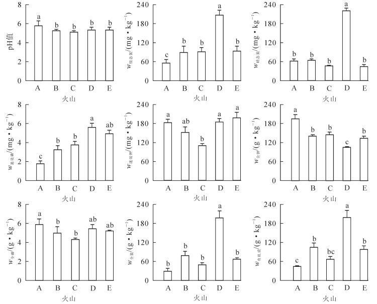 采用空间序列代替时间序列的方法对五大连池不同年代火山熔岩台地进行样方调查,在得到物种组成和土壤养分的基础上,运用相关性分析探讨不同火山熔岩台地植物多样性及其与土壤养分之间的关系。结果表明:植物物种的科、属、种数量在新期火山中最低,随着火山形成年代的增加,老期火山植物物种的科、属、种数量最高;群落乔木层、灌木层的多样性指数、均匀度指数和丰富度指数在17万a火山具有最大值(P< 0.05),群落草本层的多样性指数、均匀度指数和丰富度指数在28万a火山具有最大值(P< 0.05)。随着火山形成年代的增加,这4项指数均呈现先增加后减小的趋势,支持了森林生态系统中间阶段具有较高物种多样性的"中度干扰假说";土壤pH值、全磷、全钾、速效钾质量分数在新期火山最高(290 a),显著高于老期火山(P< 0.05),随着火山形成年代的增加呈现先减小后增加的趋势;土壤有机质、全氮、铵态氮、硝态氮、速效磷质量分数在40~50万a火山具有最大值,显著高于其他时期火山熔岩台地(P< 0.05),随着火山形成年代的增加呈现先增加后减小的趋势。乔、灌、草不同层次多样性指数与土壤的pH值、全氮、全钾有明显的相关性。