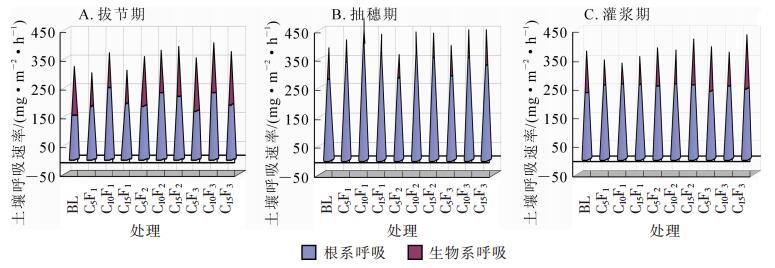 生物质炭作为一种新型的土壤改良剂,不仅可以维持土壤肥力、改善土壤退化和污染,也可提升作物长势及生产效率。以松嫩平原黑土区为研究对象,设置了3种生物质炭施加水平[C5(5 t·hm-2),C10(10 t·hm-2),C15(15 t·hm-2)],各水平设置下3种施加方案[F1(秋季施加),F2(春秋两季各施加一半),F3(春季施加)],同时设置1组对照[BL(无生物质炭施加)],共计10种处理。比较分析了不同处理条件下夏玉米Zea mays植株根系特征、氮素空间分布状况、根系呼吸强度以及氮素利用效率等指标差异,构建生物质炭用量与氮素利用效率以及收获指数之间的关联函数,进而阐述生物质炭调控模式与作物生产效率之间的作用关系,为寻求生物质炭合理、高效利用的管理模式提供理论指导。结果表明:夏玉米根系长势受生物质炭调节的影响较大,其中C5F1,C10F1和C15F1处理条件下植株根系长度分别相对于BL处理增加了1 009.10,1 640.05和1 270.24 cm,C10水平效果较为明显。同时,在F2和F3方案下,3种不同生物质炭用量处理表现出相同的规律;生物质炭的调控作用有效抑制了土壤氮素的无效流失,并且在C10F1处理条件下,土壤的固氮效果达到最优;生物质炭的保水性和保肥性提升了作物根系的呼吸强度,随着生物质炭的施入量增加,作物呼吸强度效果表现出先增加后减小的趋势,适宜地增加生物质炭的用量可以有效提升植株根系的代谢活动;生物质炭的调控作用在一定程度上促进了作物产量的积累,随着生物质炭施入量的增加以及施入方案的调整,C10F1处理条件下的作物产量、氮素利用效率以及收获指数最高。另外,生物质炭的施入量与作物产量、氮素利用效率等指标之间具有显著的二次函数关系,表明生物质炭供应与植株生产力之间存在最佳阈值。