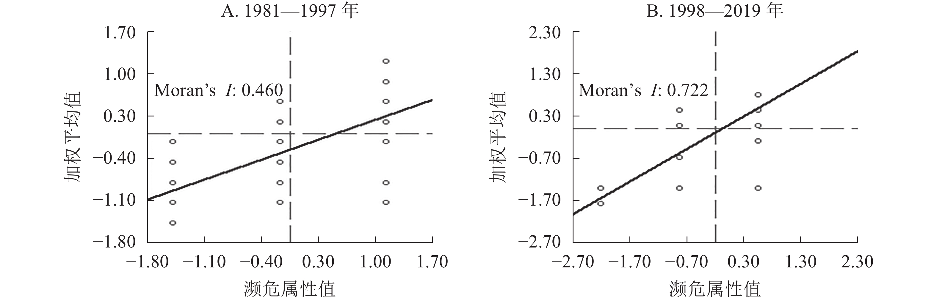 结果①1998—2019年长江流域代表性兰科植物的密度高值区减少,分布在广西、贵州的兰科植物消失。密度中值区发生变化,兰科植物由四川中部向四川北部迁移;②长江流域代表性兰科植物的濒危等级值和空间位置呈显著正相关水平,1998—2019年比1981—1997年相关性更强;③高危险区发生变化,1981—1997年兰科植物高危险区主要分布在贵州和湖北,而1998—2019年主要分布在湖北。