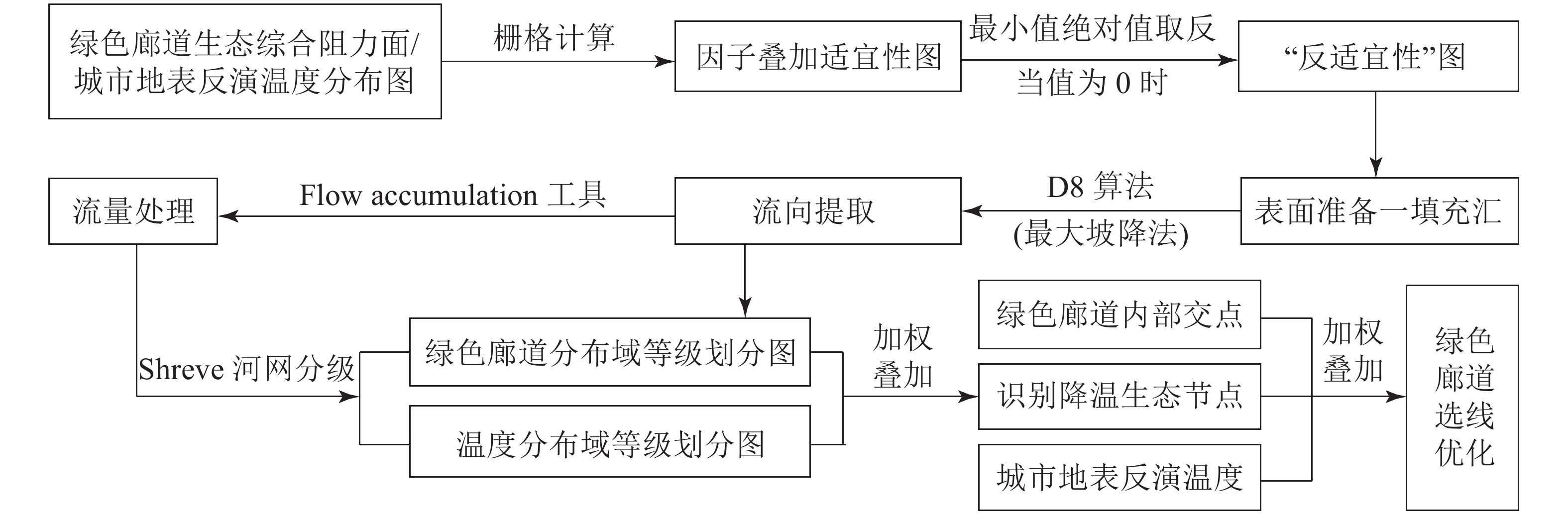 目的绿色廊道的空间分布和结构特征对改善城市热环境具有重要的生态效益,绿色廊道的路径选线直接影响其属性特征,因此,通过优化绿色廊道的景观格局来降低城市的热岛强度是行之有效的生态途径和方法。