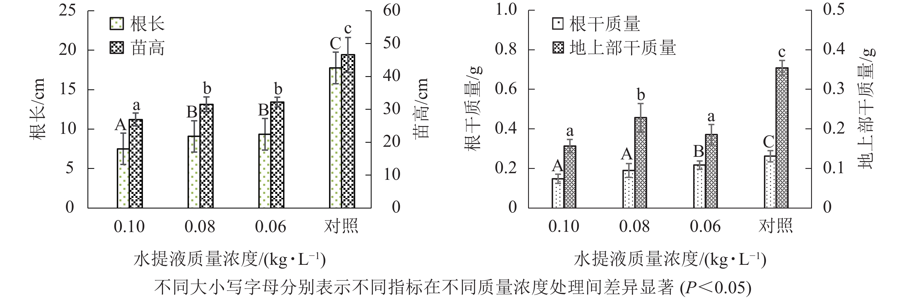 P<0.05)抑制盆栽糯玉米苗期根系与地上部的生长。仅当添加的结球甘蓝叶水提液质量浓度为0.10 kg·L