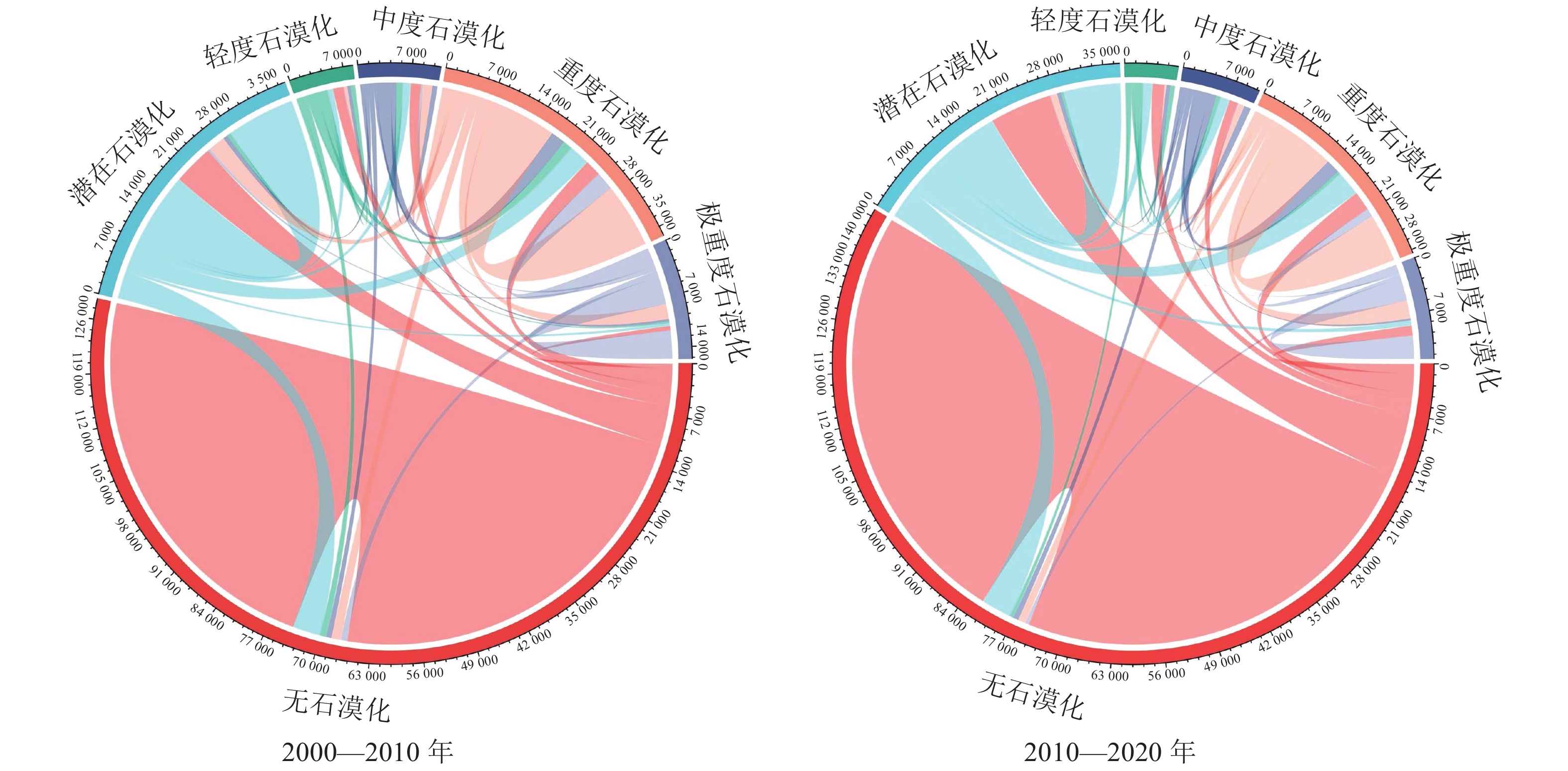 结果①研究时段内,云南省石漠化状况整体得到改善,石漠化占国土面积比例从9.65%下降至6.48%,但局部地区仍在恶化。②云南省石漠化空间分布呈东多西少的特征,其中昭通、曲靖、文山、红河和昆明等地区的石漠化分布面积较大,占全省石漠化发生面积的65.42%~72.14%。③石漠化演变流向复杂,既转移至石漠化程度高的等级又向石漠化程度低的等级转移,边治理边破坏的现象未被遏制。④极重度石漠化修复所需的周期较长,近20 a间云南省极重度石漠化大部分转移至重度石漠化。⑤石漠化内部演变过程剧烈,轻度石漠化和中度石漠化的综合变化速率较快,易于改善的同时亦存在较高的恶化风险,需加以重视。