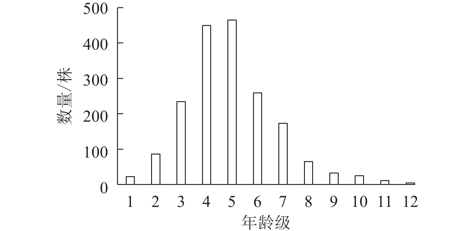 结论额敏县新疆野苹果种群结构不稳定,不同龄级个体之间空间关联性不强,应加强抚育管理,通过人工种植等方法改变其现有的随机分布状态,使其聚集生长,以促进当地新疆野苹果种群稳定生长及资源恢复。图3表1参35