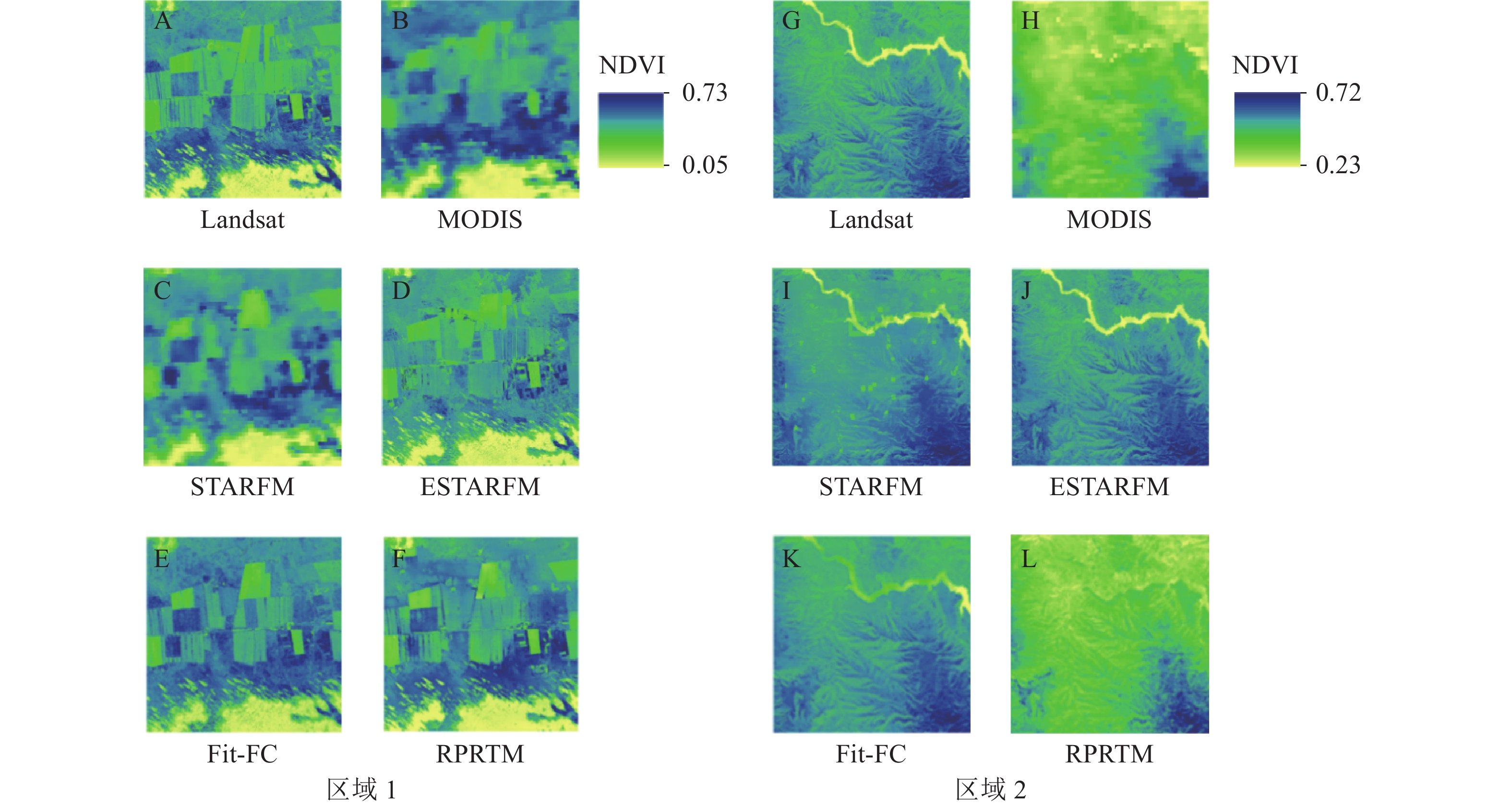 结论4种时空融合模型能有效用于生成高时空分辨率的NDVI数据,不同模型其融合效果各有不同,RPRTM在复杂地表区域与模拟植被生长动态变化中均有较好表现。图4表1参38