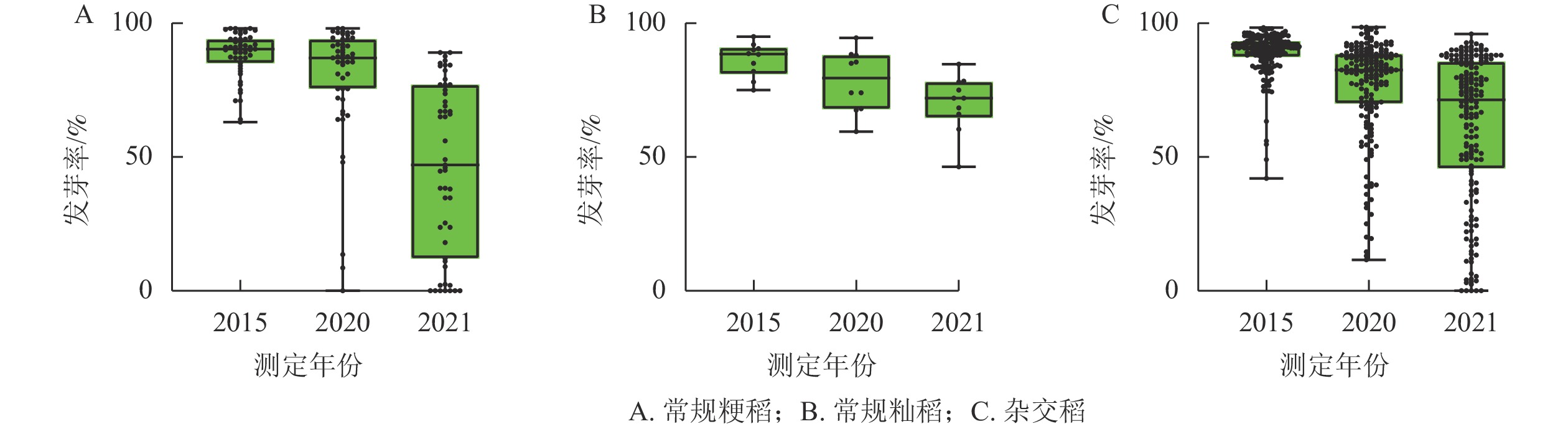 方法基于220份水稻品种,经过5~6 a的自然老化,通过室内标准发芽实验筛选出耐贮水稻品种,并进一步测定不同耐贮品种间的生理特性。