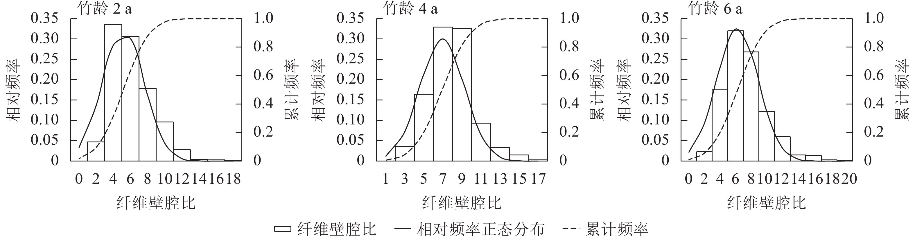 结果竹龄主要影响竹材的纤维长度,纤维长度随竹龄的增长而增大,且80%的纤维长度为1 000~2 500 µm,属长纤维。轴向高度对毛竹材纤维形态的影响较小,纤维壁腔比、长宽比在3个取样部位间差异显著(