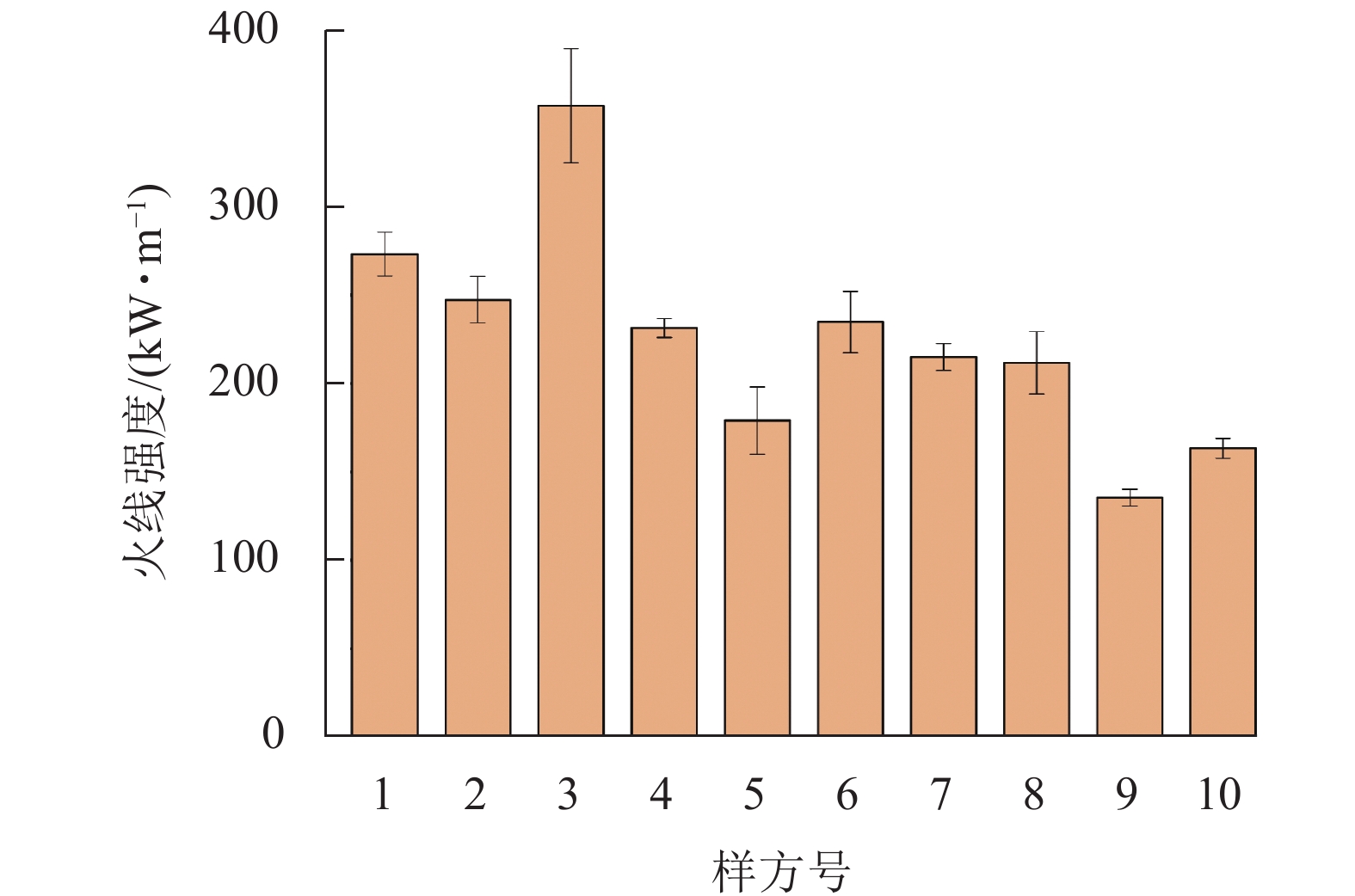 –1,火线强度为147~332 kW·m